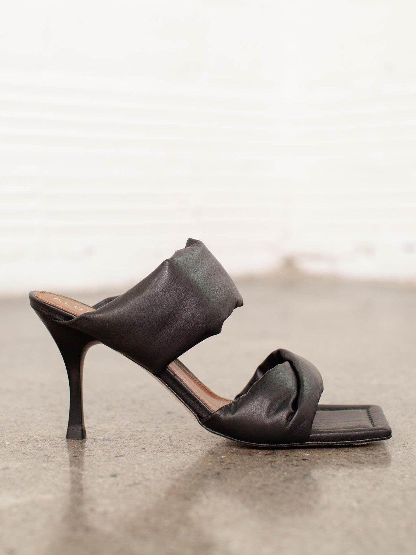Edgy with a modern chic twist (quite literally), these new arrivals from ALOHAS are sure to complete + instantly elevate any and every look. A double strap design features a padded leather fabrication for the ultimate in comfort. A squared off toe adds in impactful modern design that, when paired with the small heel, provides a totally trending look.