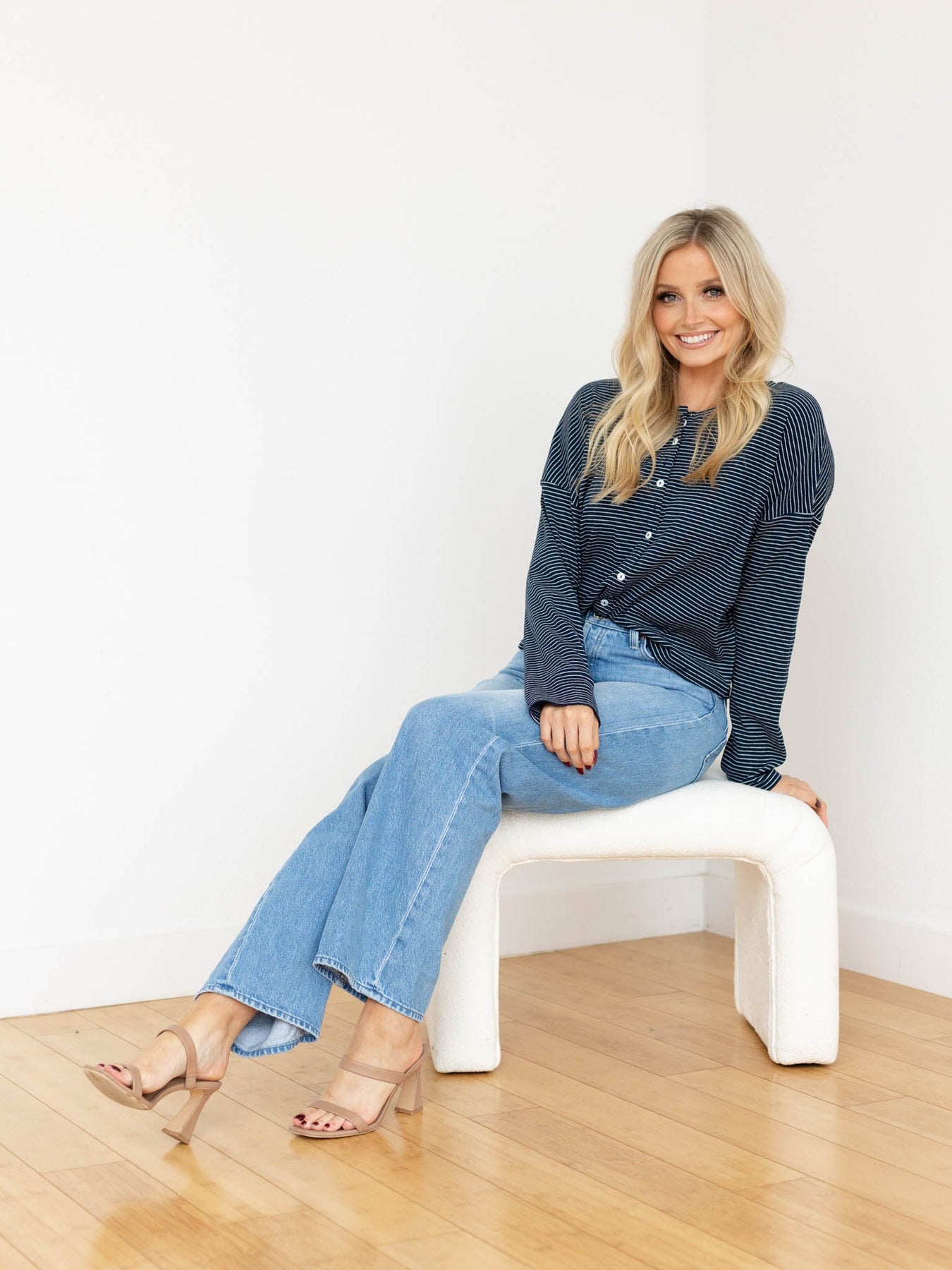 Elevate your casual style with our Button Down Ribbed Cardigan. The subtle ribbed knit fabric adds texture while the dainty stripe print adds a touch of elegance. The button down closure and collarless design make it versatile for any occasion. Stay chic and comfortable all day long.