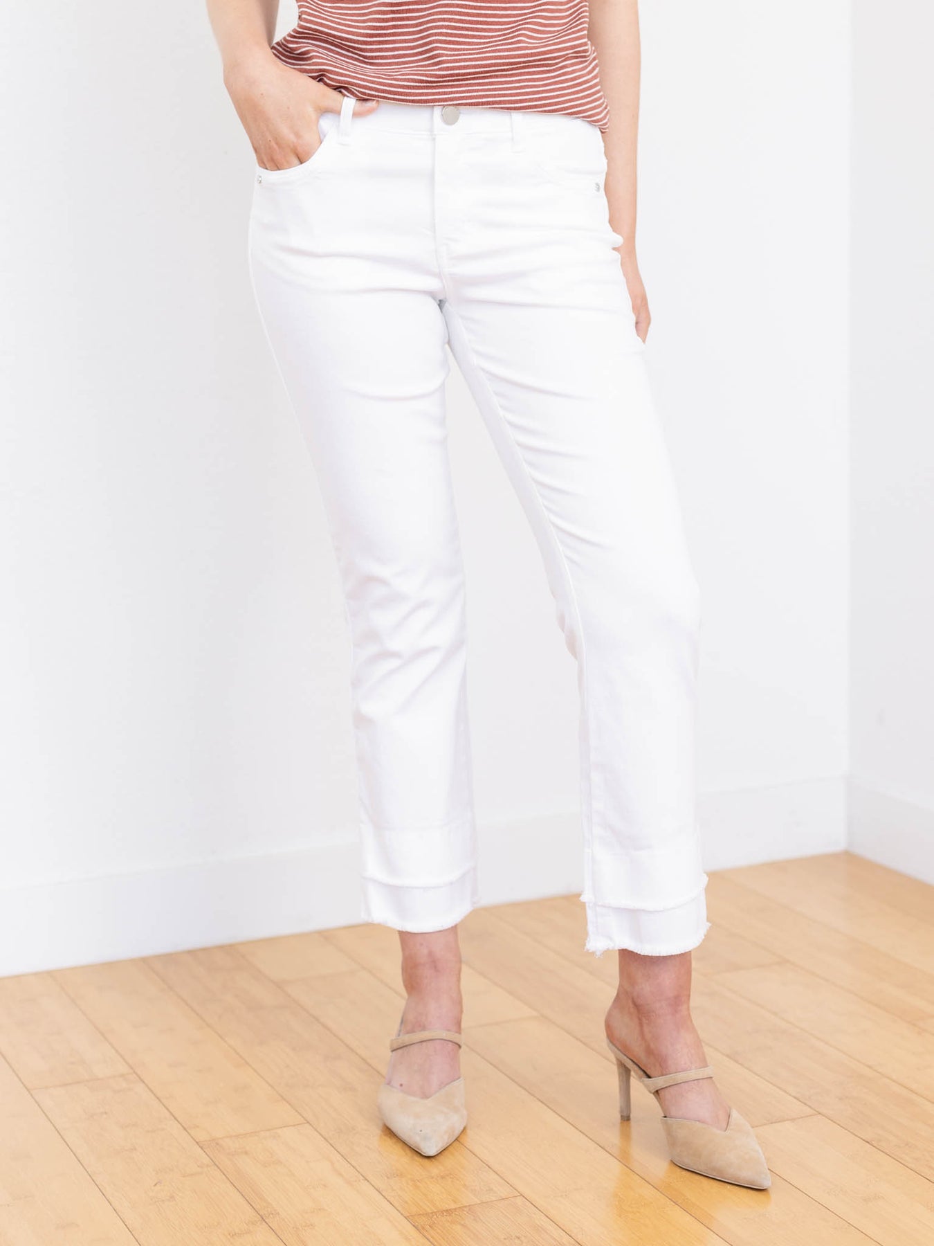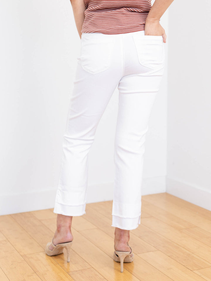 We are loving all of the changes that we are seeing with denim this season! A fun way to update your everyday look, these new arrivals from Democracy are full of special details to add a modern flair to your wardrobe. Starting with the slimming waistband design, these crisp white denim jeans lead down into a cropped small flare leg opening highlighted by a double frayed accent at the hem. Focusing on this trending silhouette, we love how this transitions from season to season with ease!