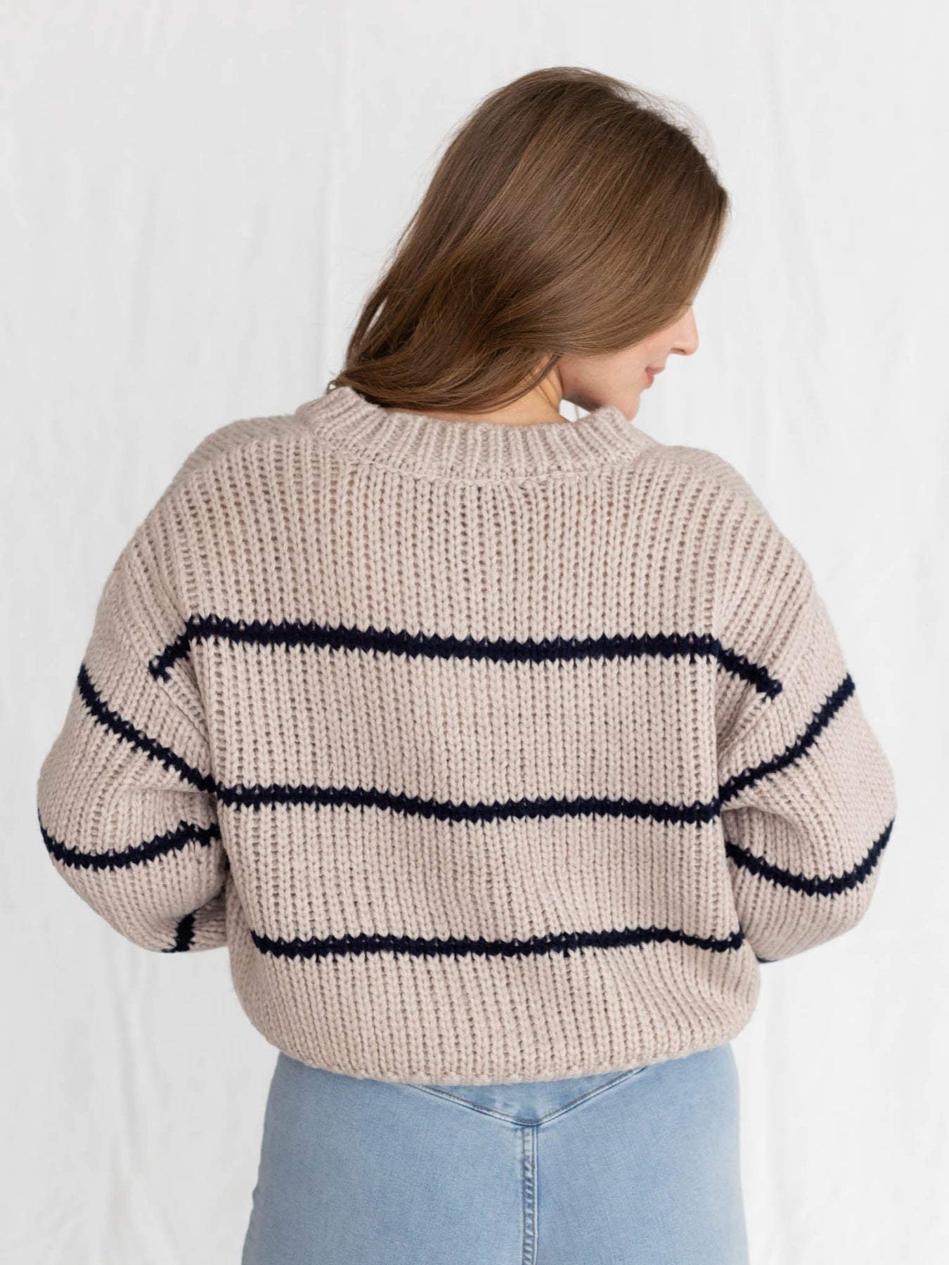 Wrap yourself in cozy charm with this delightfully fluffy striped cardigan. Featuring a classic crew neck and chunky knit construction, it's the perfect layer for effortless style. The button-front design lets you wear it open over your favorite tee or buttoned up for extra warmth. Soft, textured, and undeniably huggable—this striped beauty is ready to become your go-to piece for casual days and relaxed weekends.