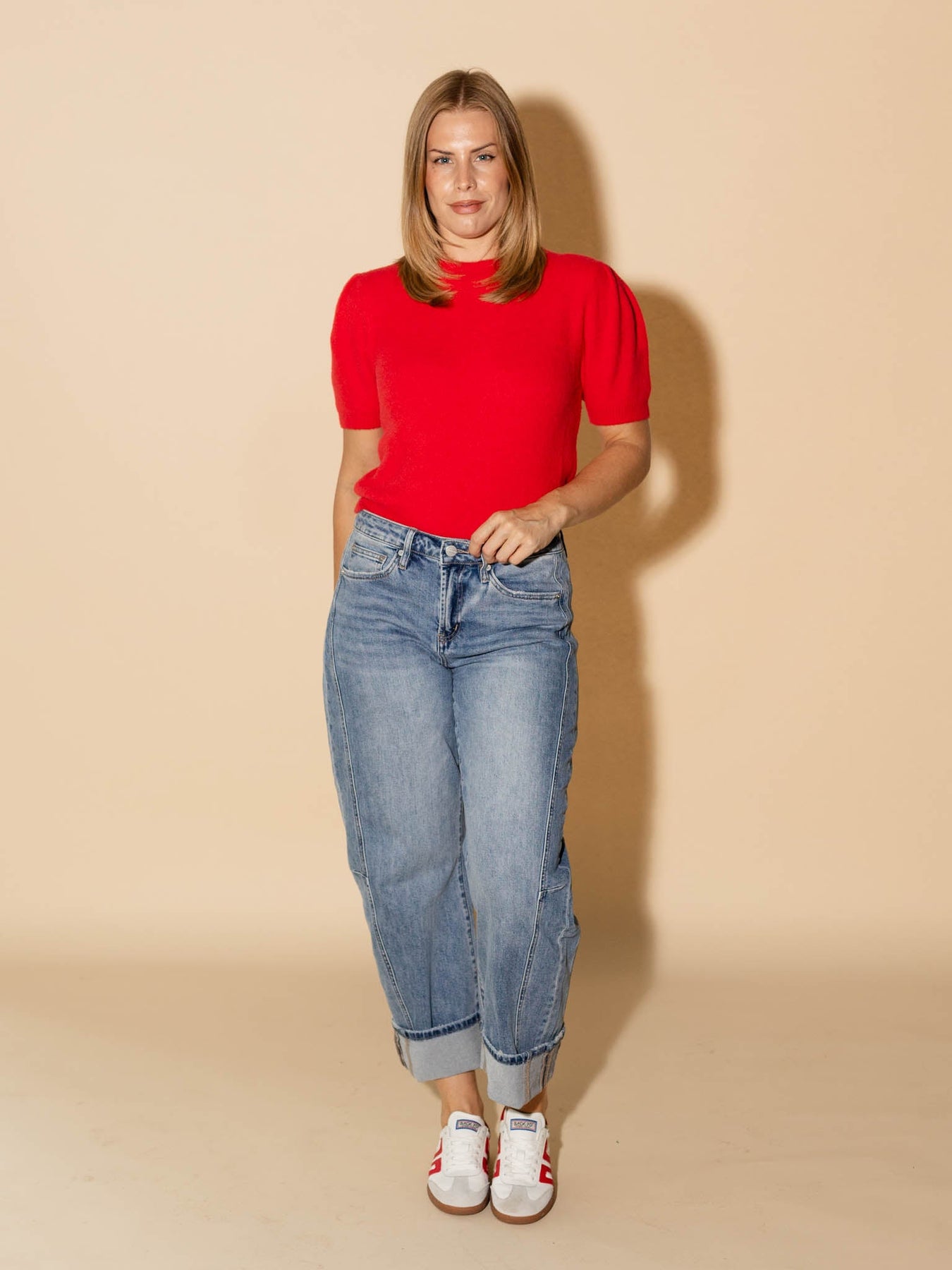 This new arrival features a slightly higher neckline and subtle puffed sleeve accents for a refined silhouette. Crafted from super soft fabric, it ensures all-day comfort. Its versatile design makes it an effortless and stylish choice for any occasion, combining elegance with ease.