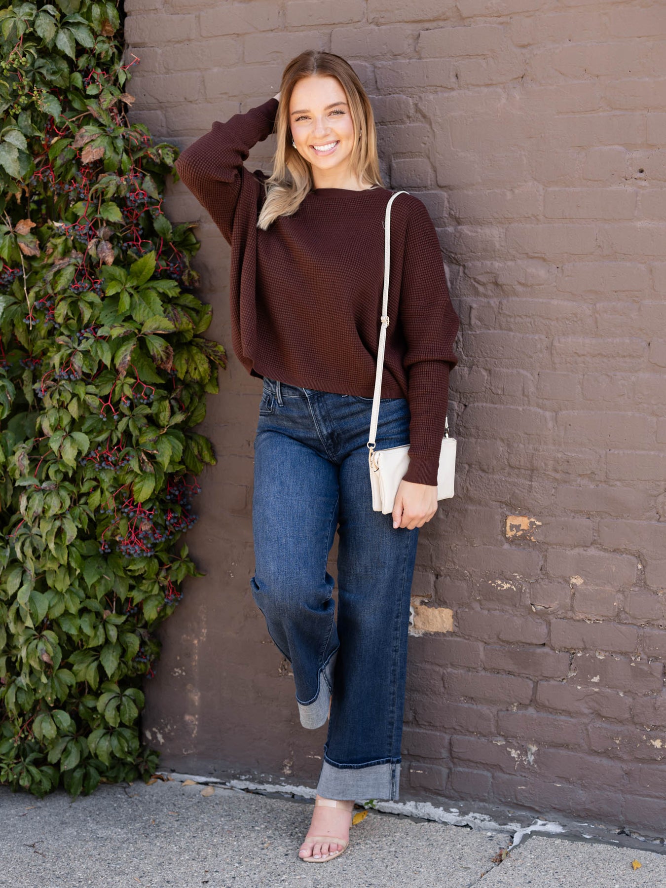 Experience effortless comfort with this waffle textured soft sweater. Designed with a relaxed, boxy fit and drop shoulders, it offers a casual, laid-back style perfect for everyday wear. The classic crew neckline adds a subtle touch of timeless appeal, making it an easy choice for layering or wearing on its own. Embrace a cozy yet stylish look that moves with you throughout the day.