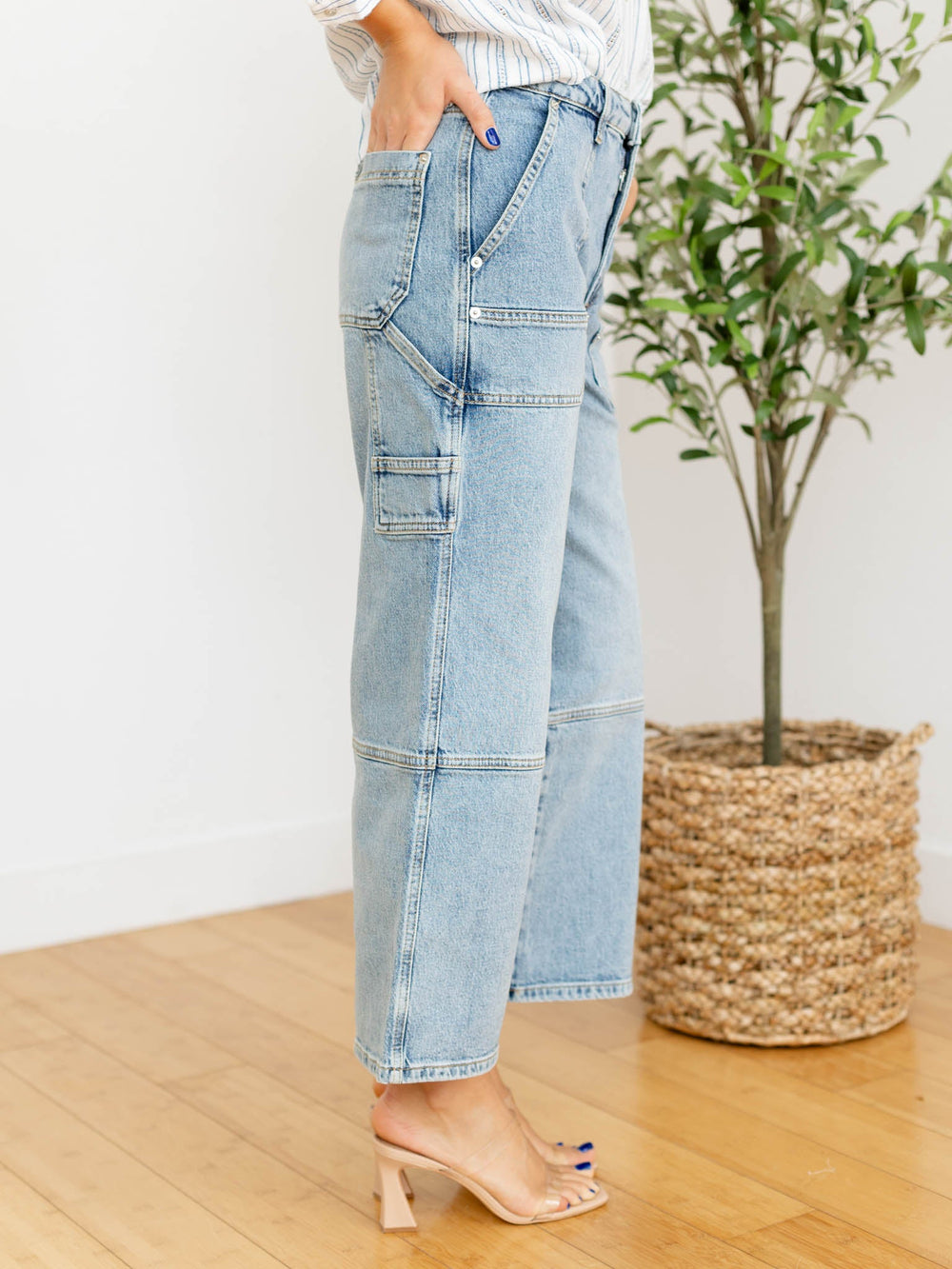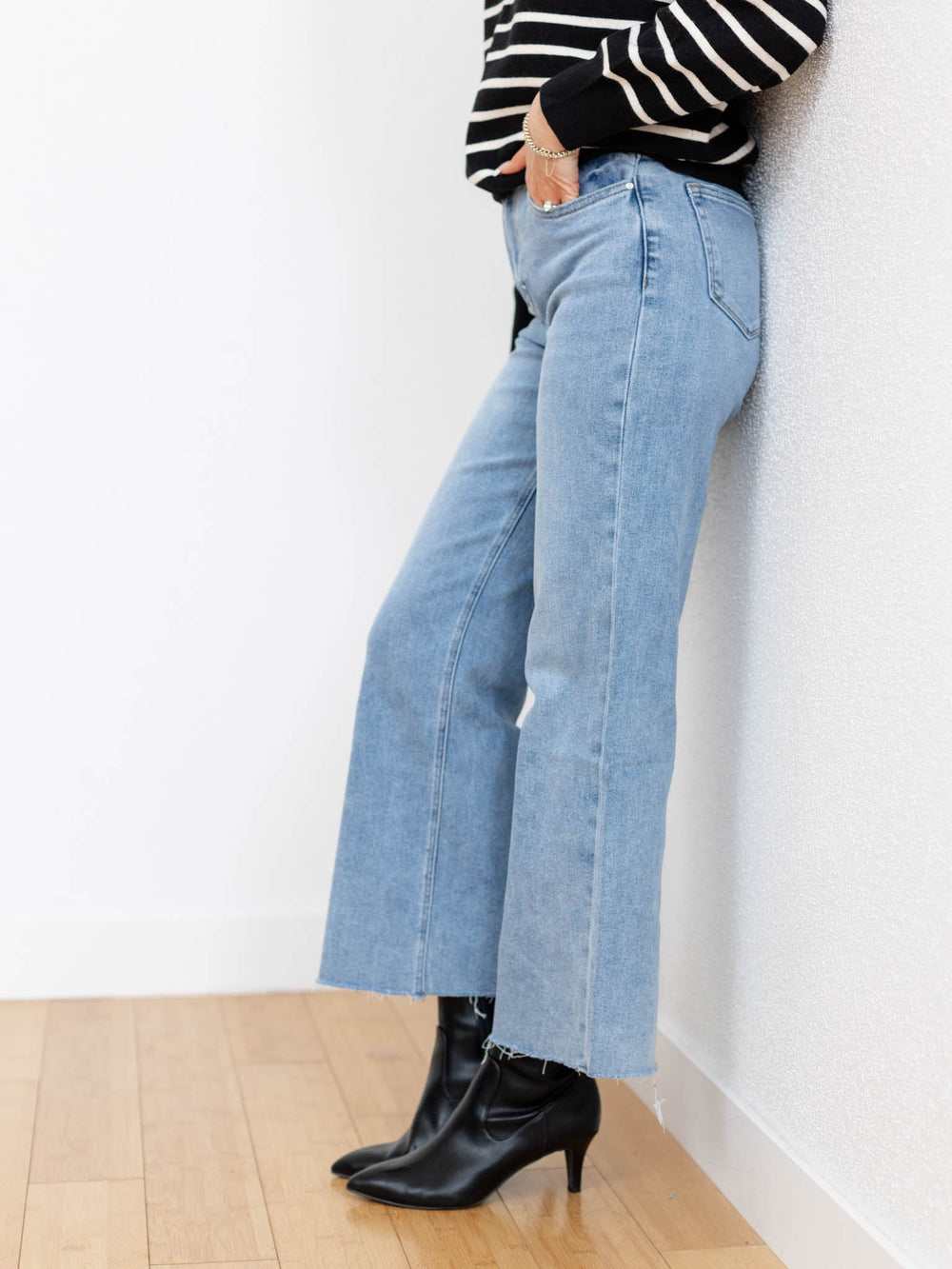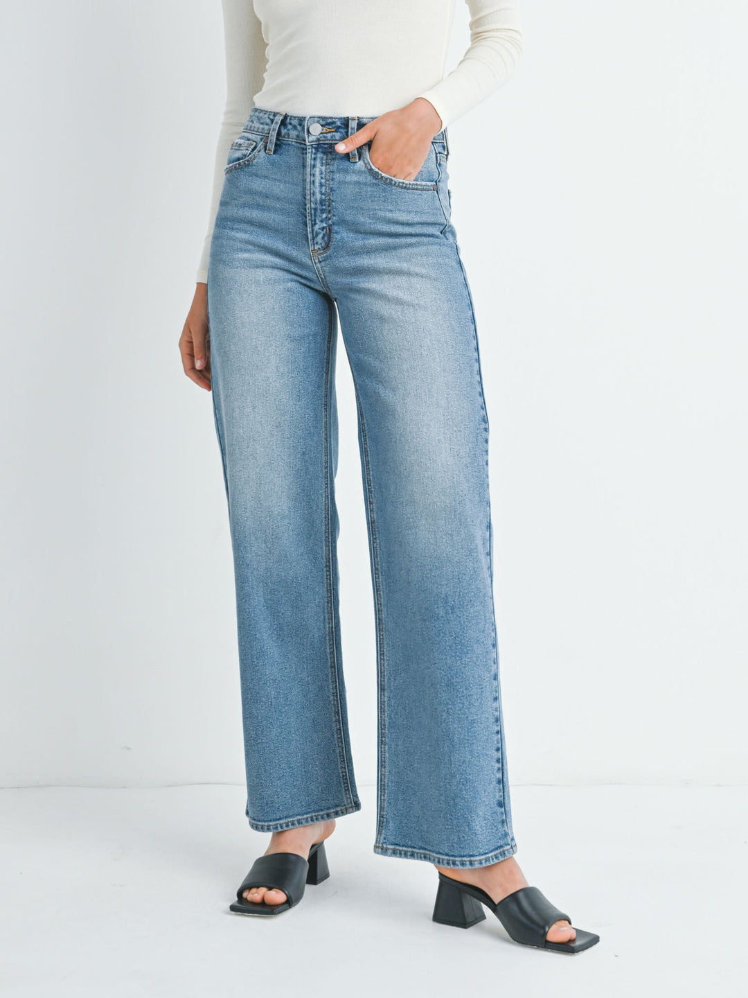 medium wash wide leg denim