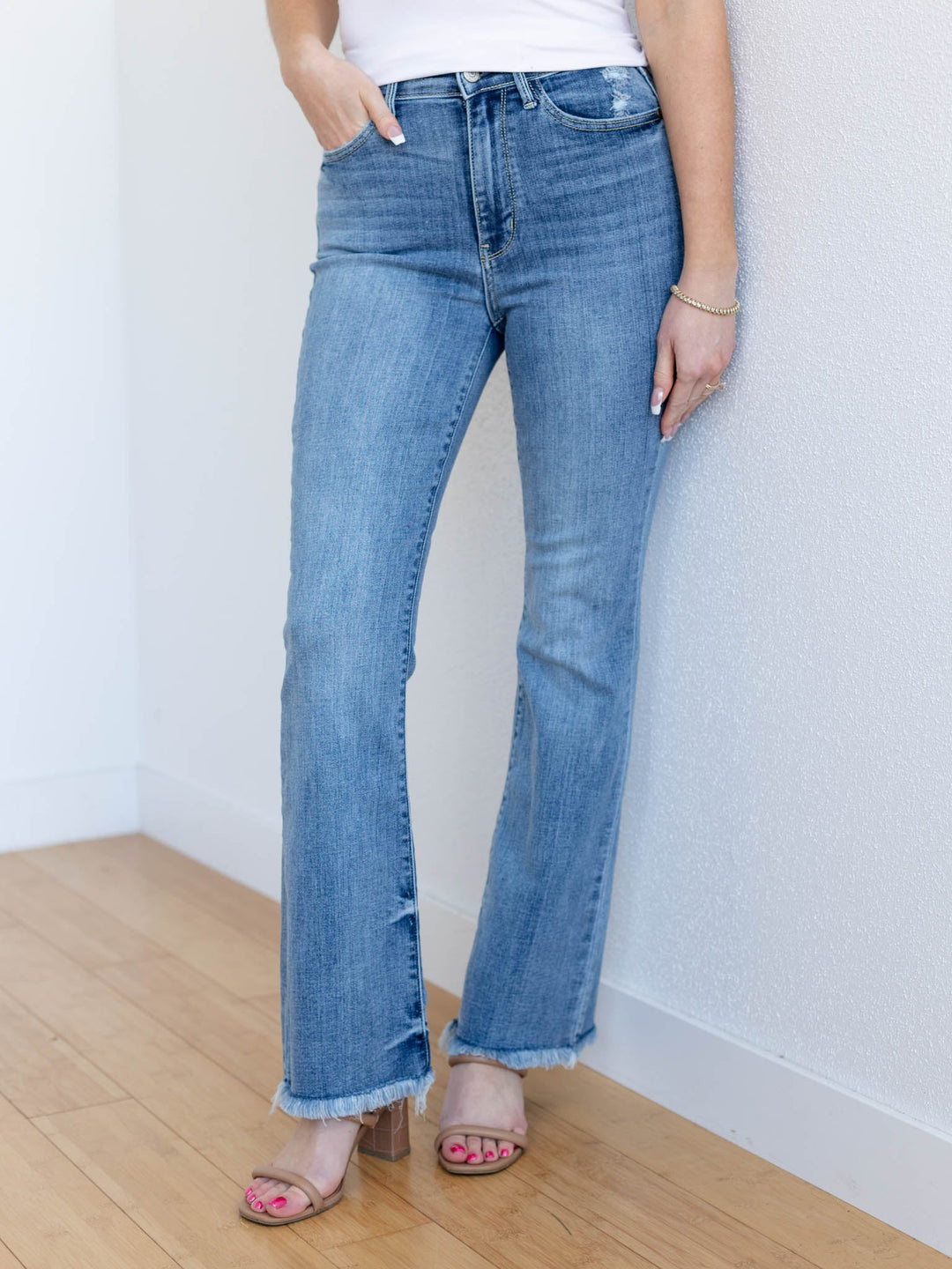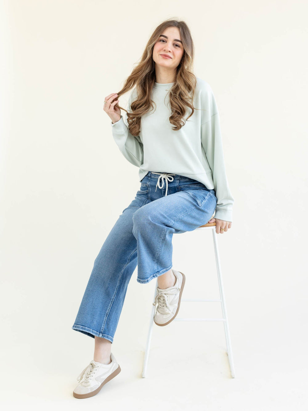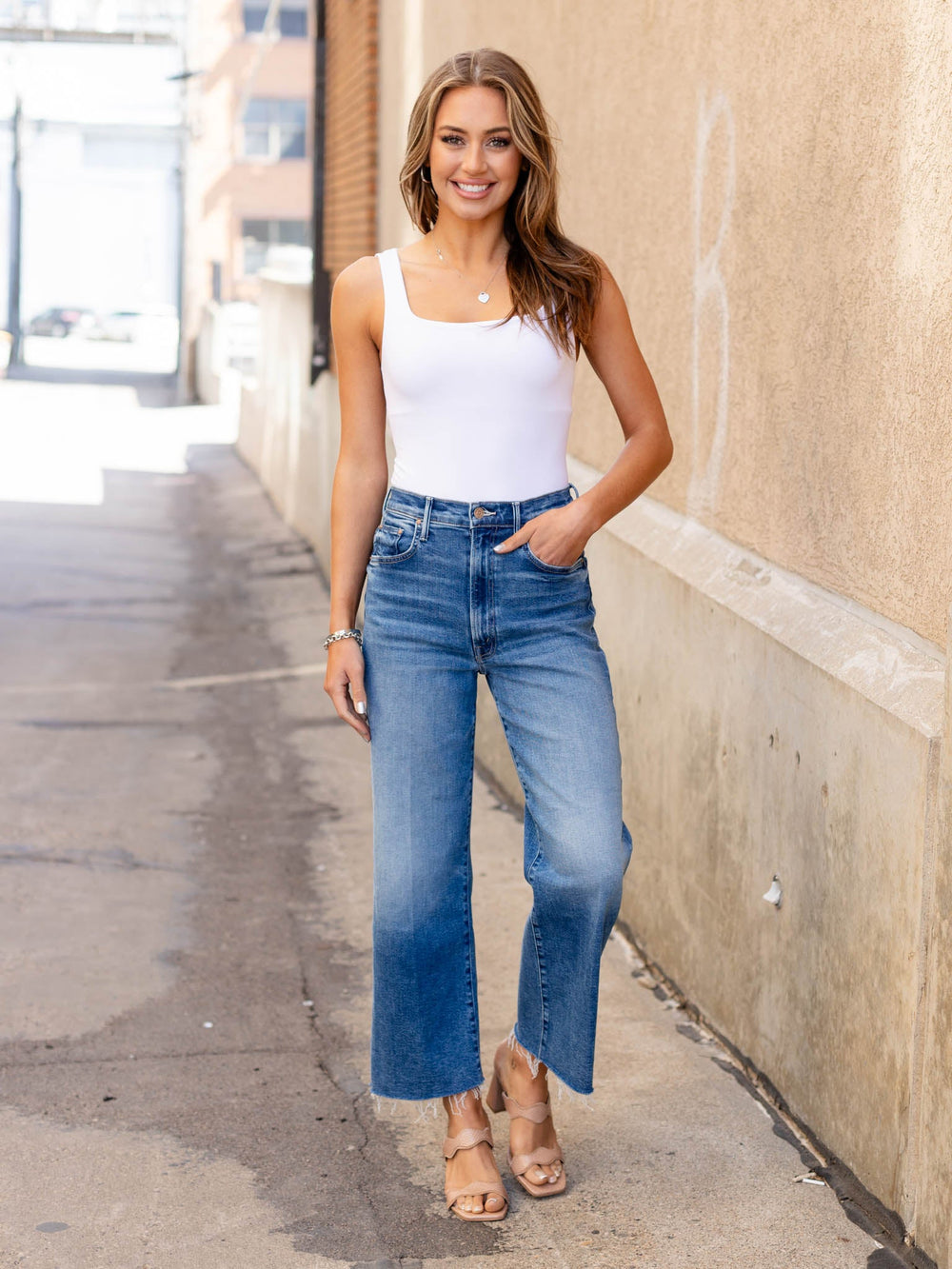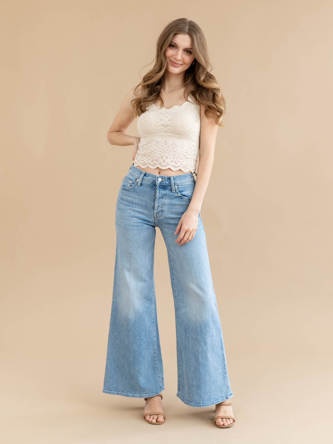 medium wash wide leg denim