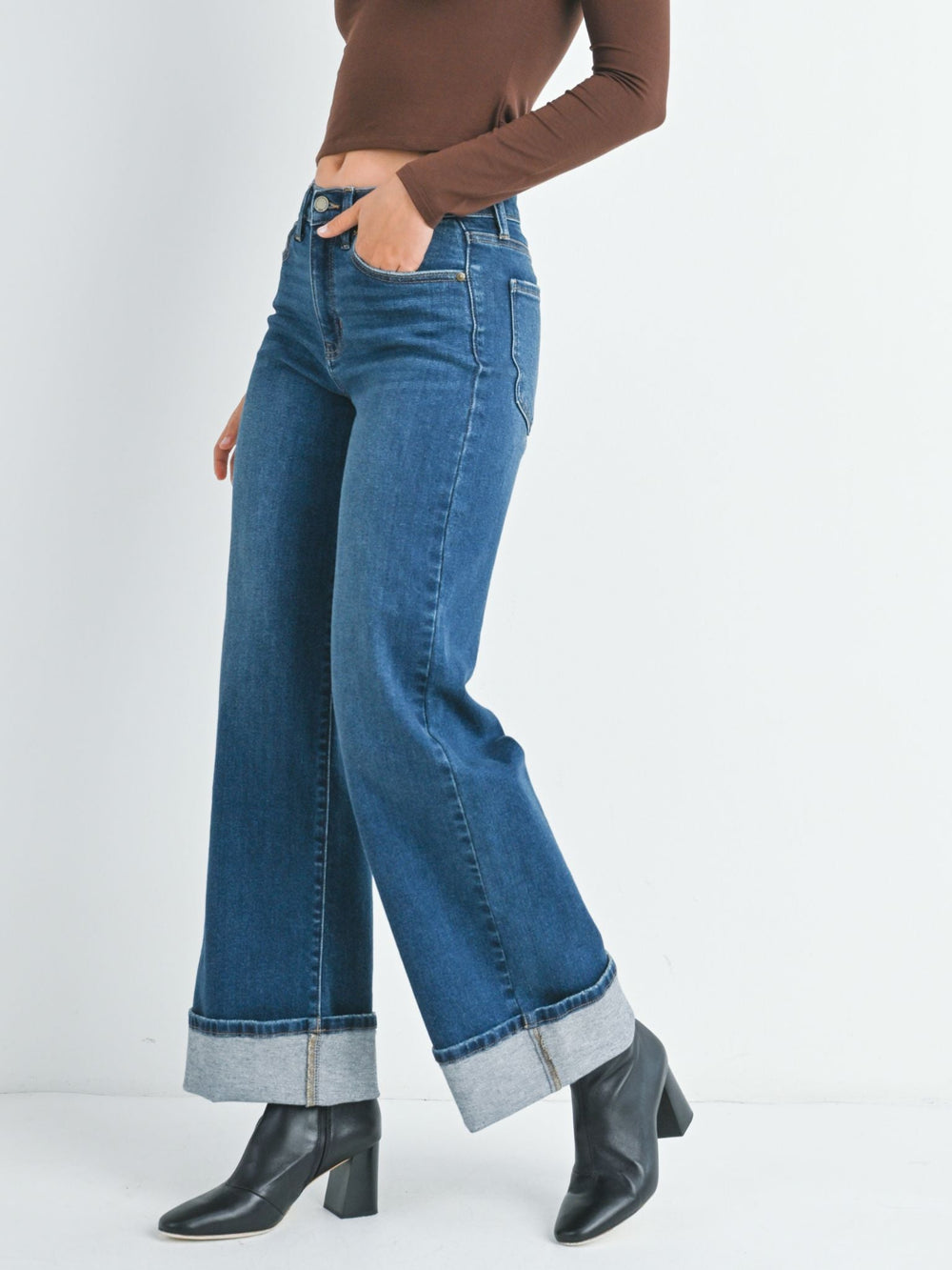 dark wash cuffed denim