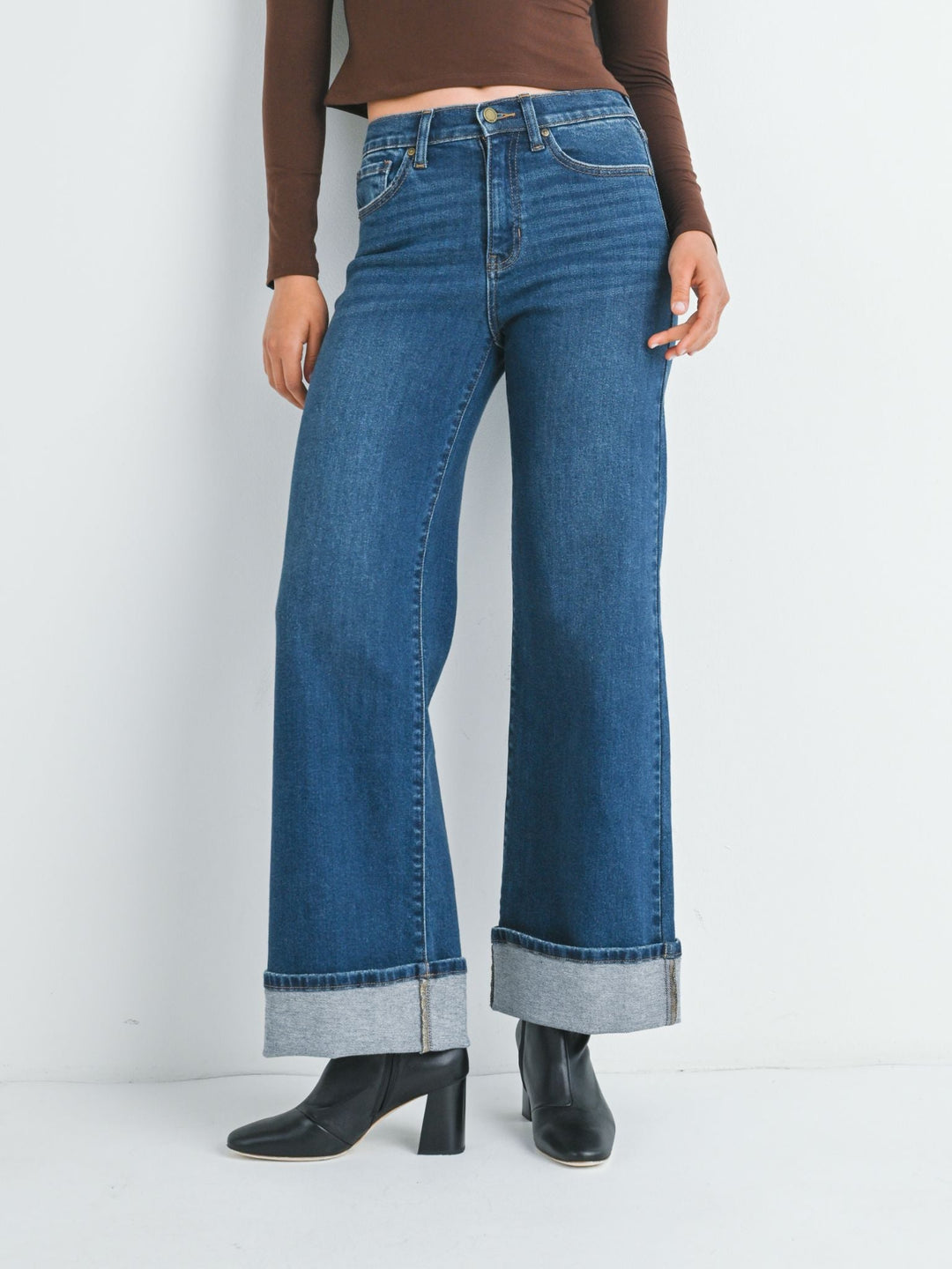 Just Black Dark Denim Cuffed Wide Leg