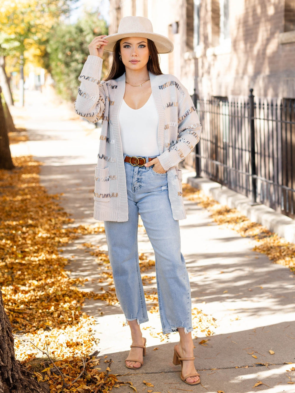 brown cropped wide leg denim