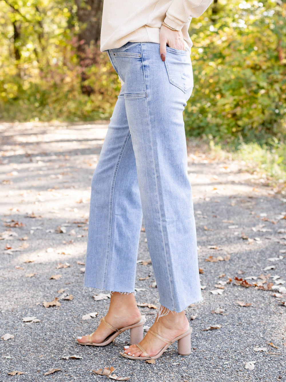 frayed wide hem washed denim