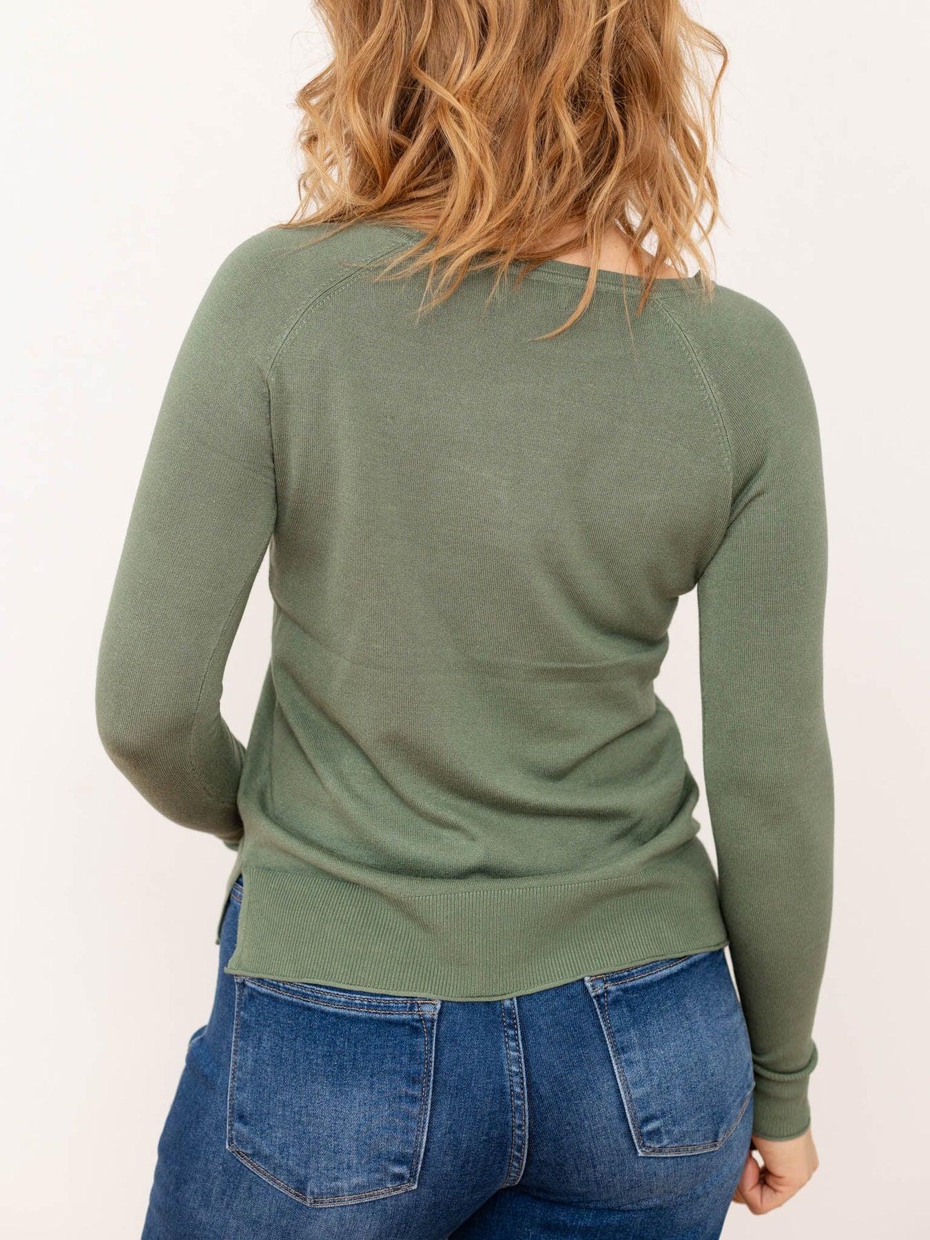 The Camille Sweater is your new go-to for effortless style. Crafted from incredibly soft, lightweight fabric, this elevated basic features charming raglan sleeves that move with you all day long. Perfect for layering or wearing solo, it's the kind of piece that feels like a cozy hug while looking polished enough for anything. Slip it on and feel the difference quality makes.