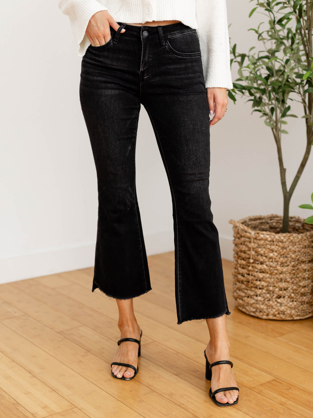 Step into bold style with these new arrivals from VERVET. Crafted from soft fabric, these jeans feature a flared leg opening and a shorter ankle length for an edgy, playful look that’s perfect for transitioning between seasons. Make every outfit pop with this fun and flattering flare!