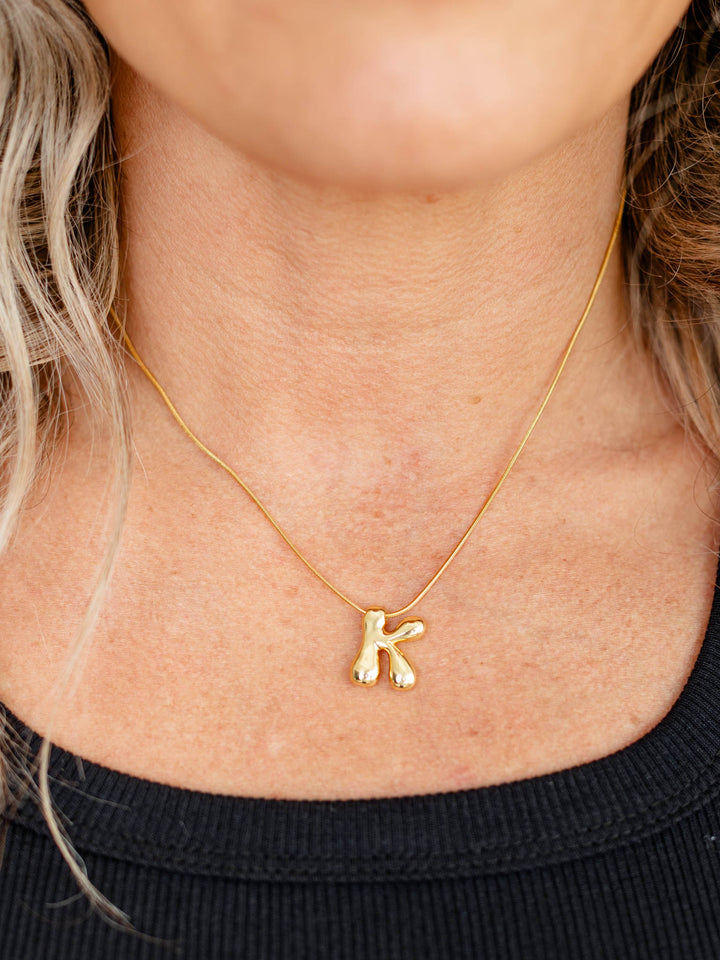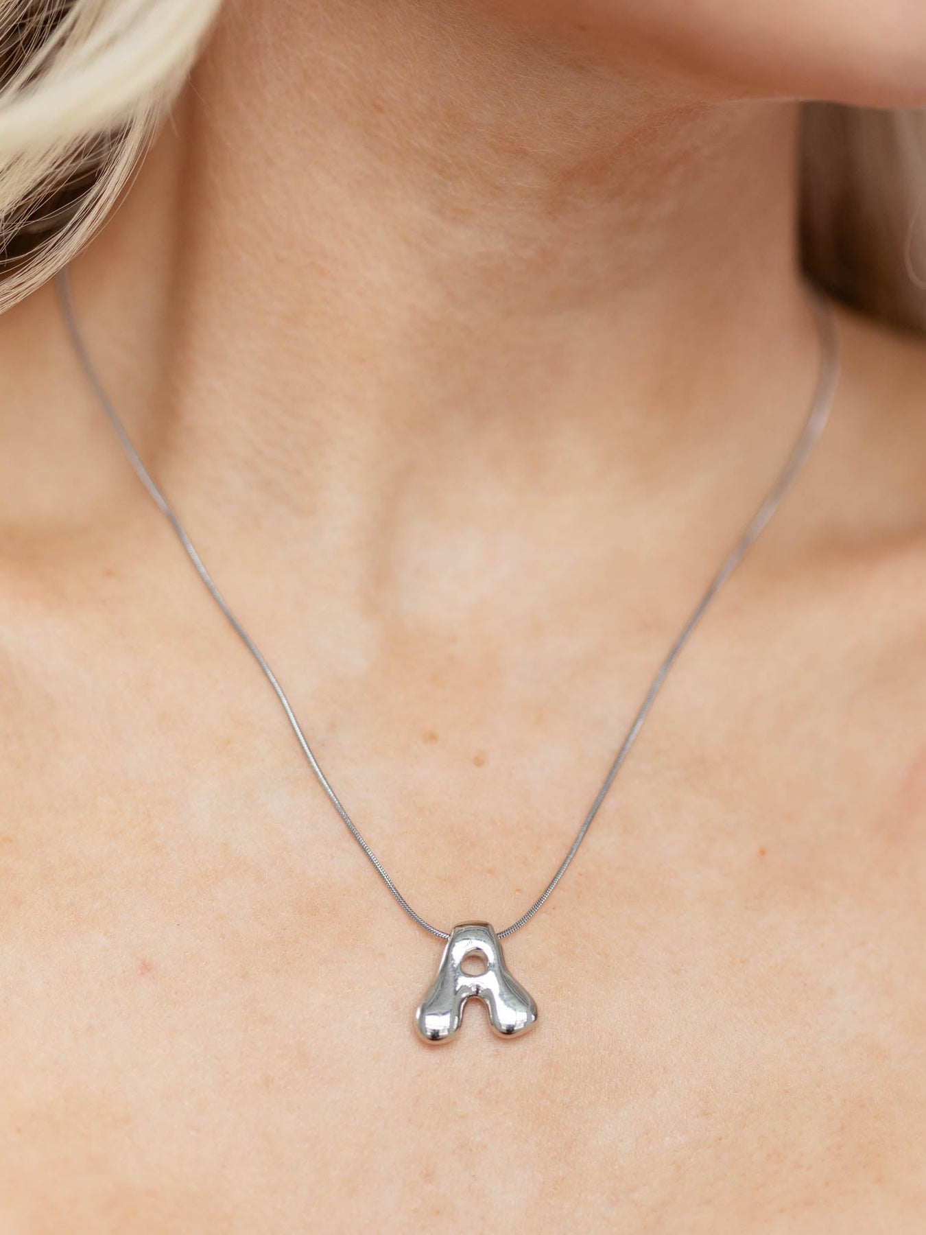 This small necklace features a bubbled balloon inspired initial falling from a delicate chain to add a personal touch to your everyday look.