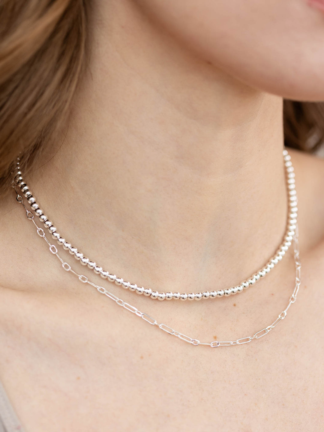 A traditional chain link design is layered wth a metal ball beaded design for a more casual, layered look we love for easy everyday wear!