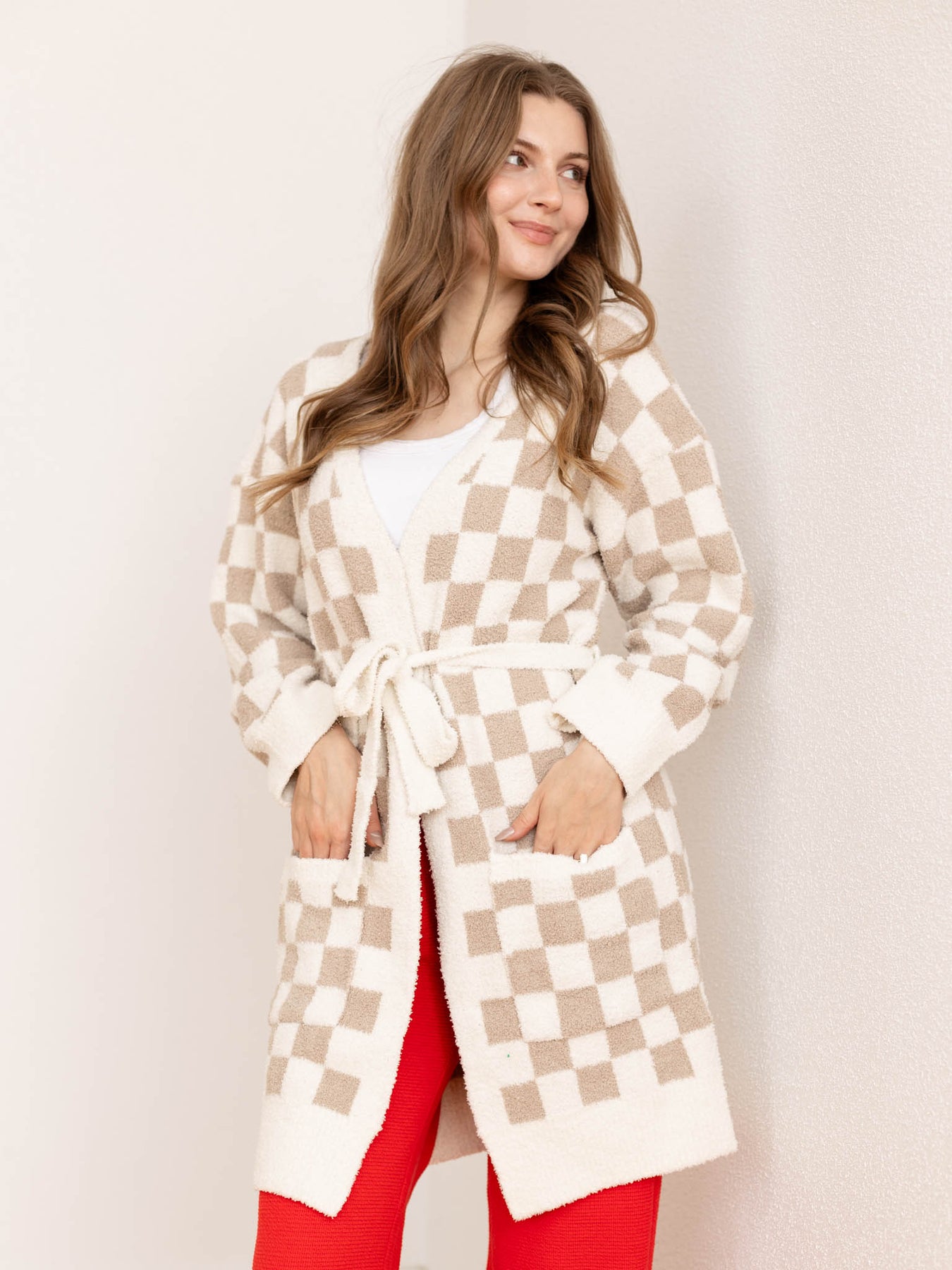 Wrap yourself in pure comfort with this delightfully soft robe. Crafted from luxuriously cozy fabric, it features a traditional neutral check pattern that is perfect to add into your everyday routine. Perfect for lazy mornings, relaxing evenings, or gifting to someone special who deserves a little extra coziness. A playful essential that combines style with ultimate comfort.