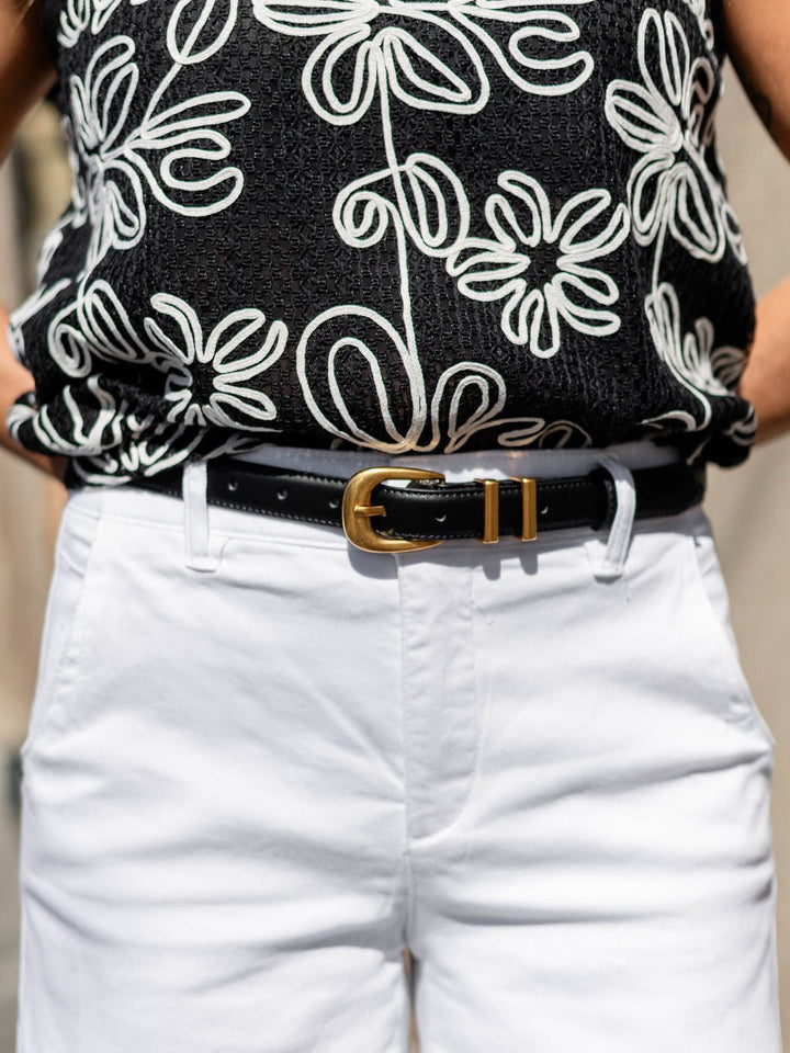 This thin, solid belt features a chunky buckle and double detail design for a super chic way to pull together any and every outfit this season.
