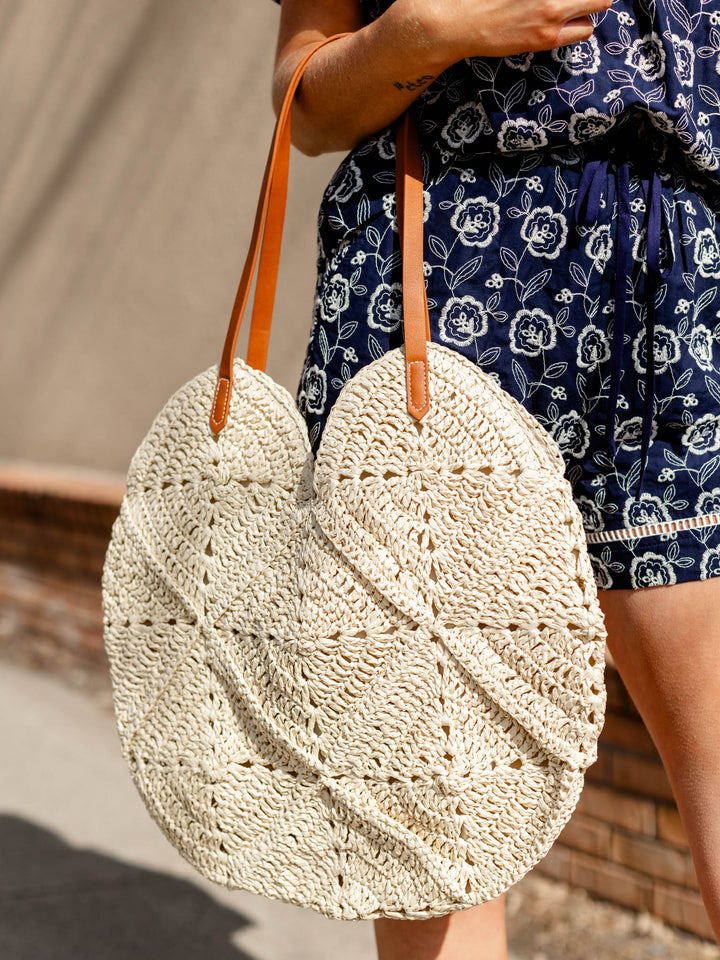 Vacation ready or preparing for a summer at the lake - this new arrival is the perfect "it" bag. We love the crochet raffia detail that falls from thin straps for a tote inspired look. This open bag features a single snap button closure for easy access to all of your belongings. Slightly oversized, this is perfect for tossing your beach essentials in!