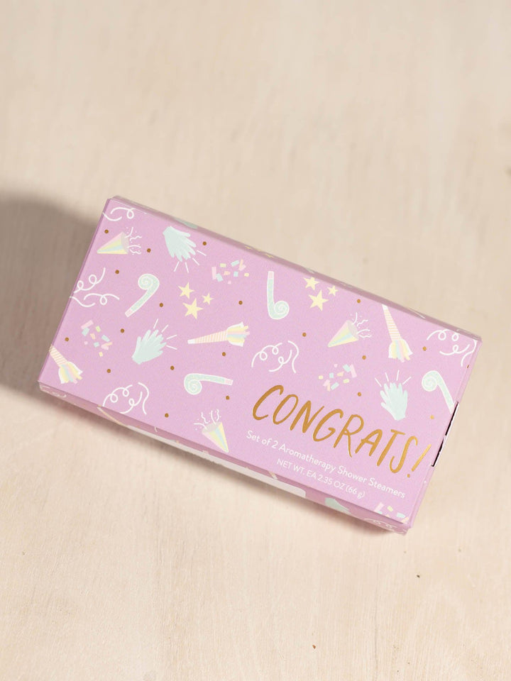 A set of 2 aromatherapy shower steamers with a "Congrats" message - a great gift giving idea!