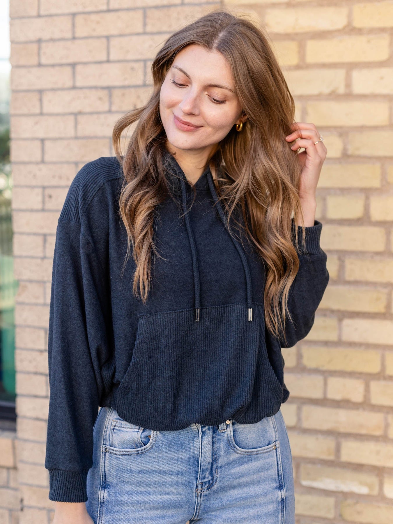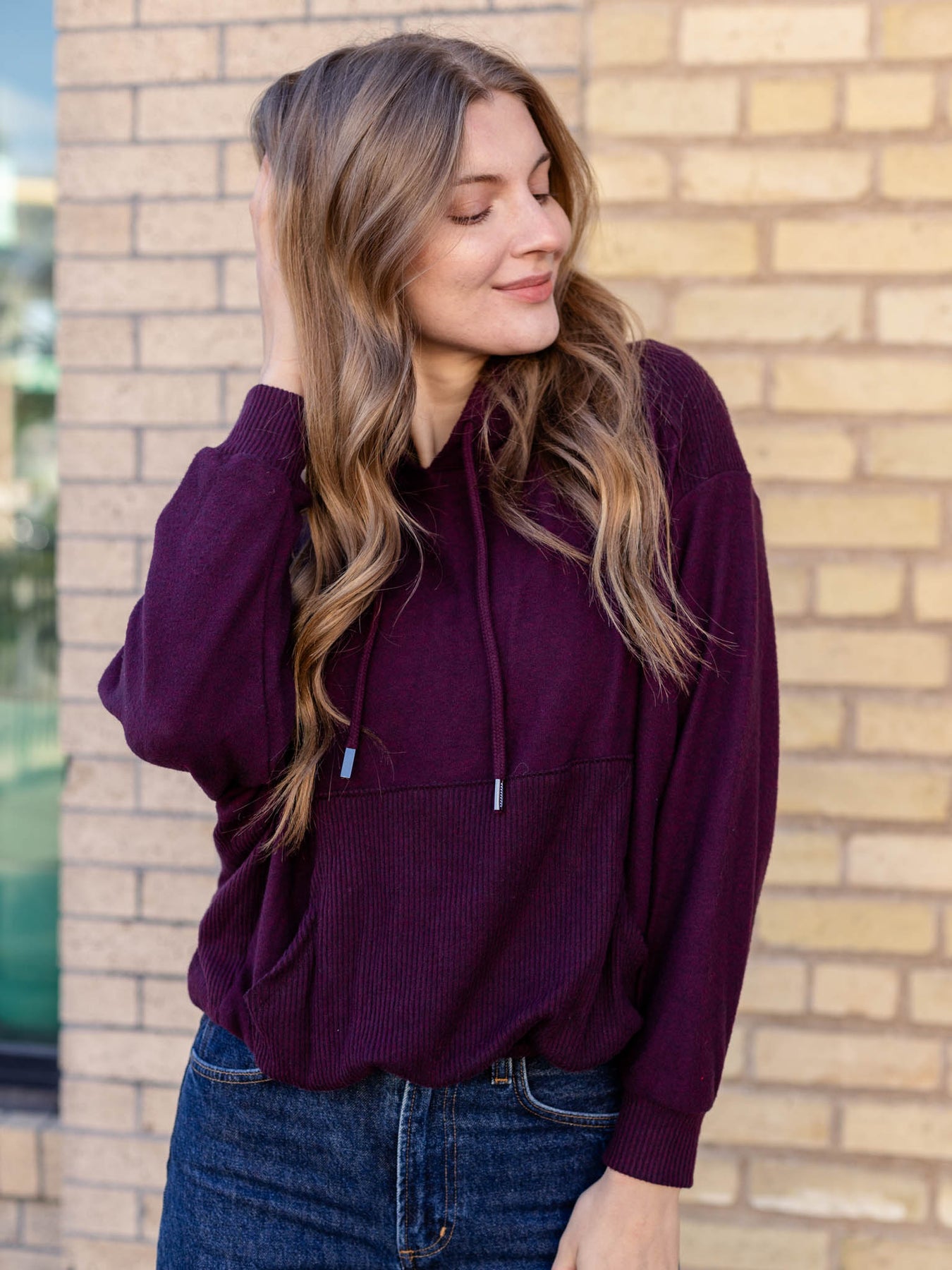 Experience comfort and style with the Democracy Long Sleeve Bubble Hem Knit Top. Its unique high-neck collar and super-soft brushed heathered fabric provide cozy warmth, while rib trim accents add casual flair. The kangaroo pocket and bubble hem detail offer practical and charming touches, all in a relaxed fit designed to move with you. Perfect for casual days when you want to feel supported and effortlessly put together.