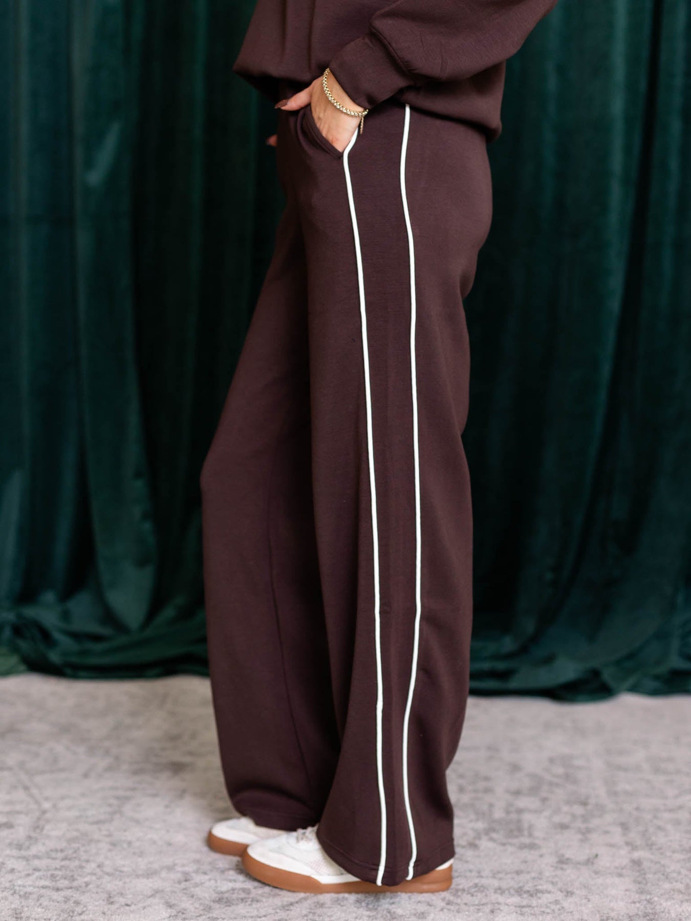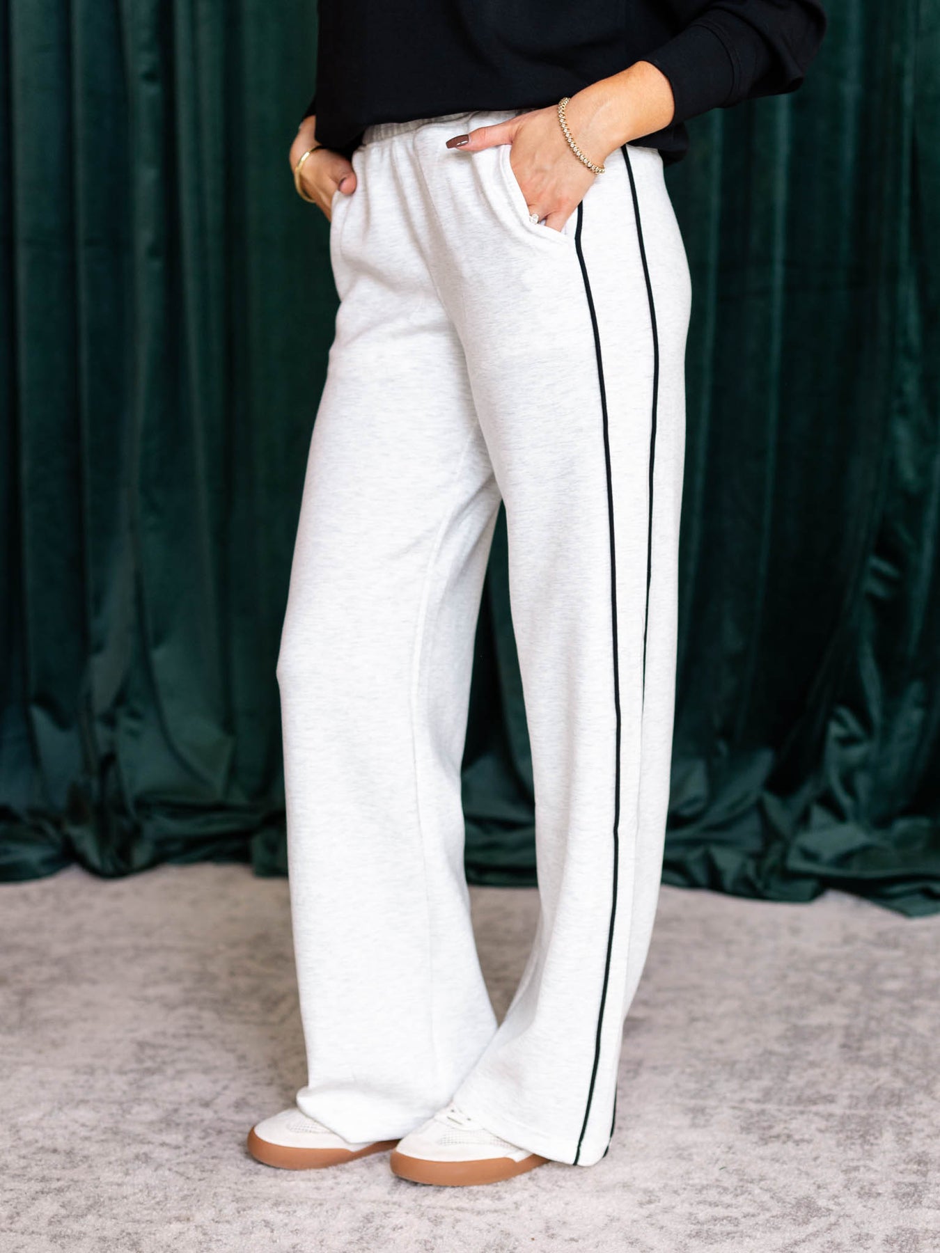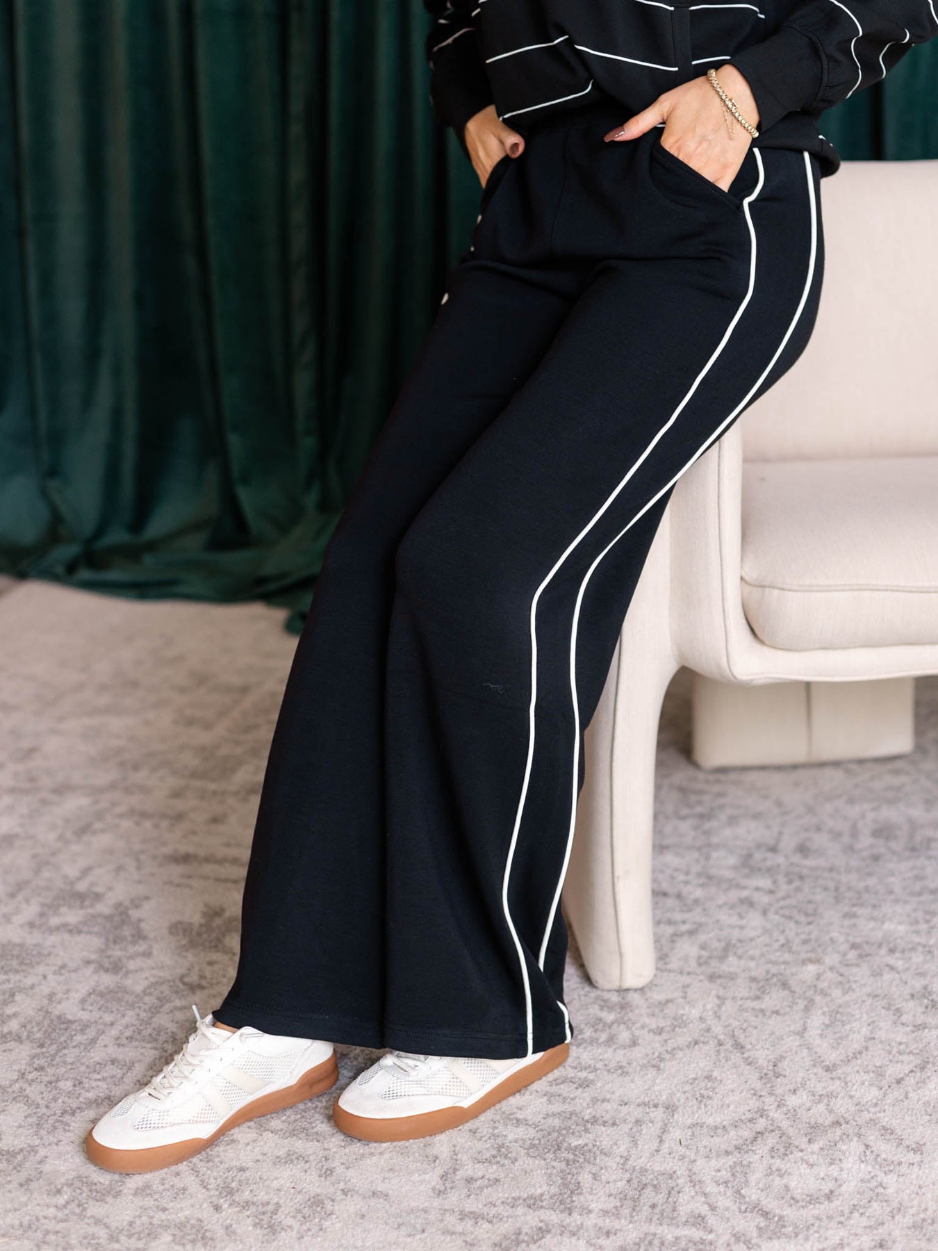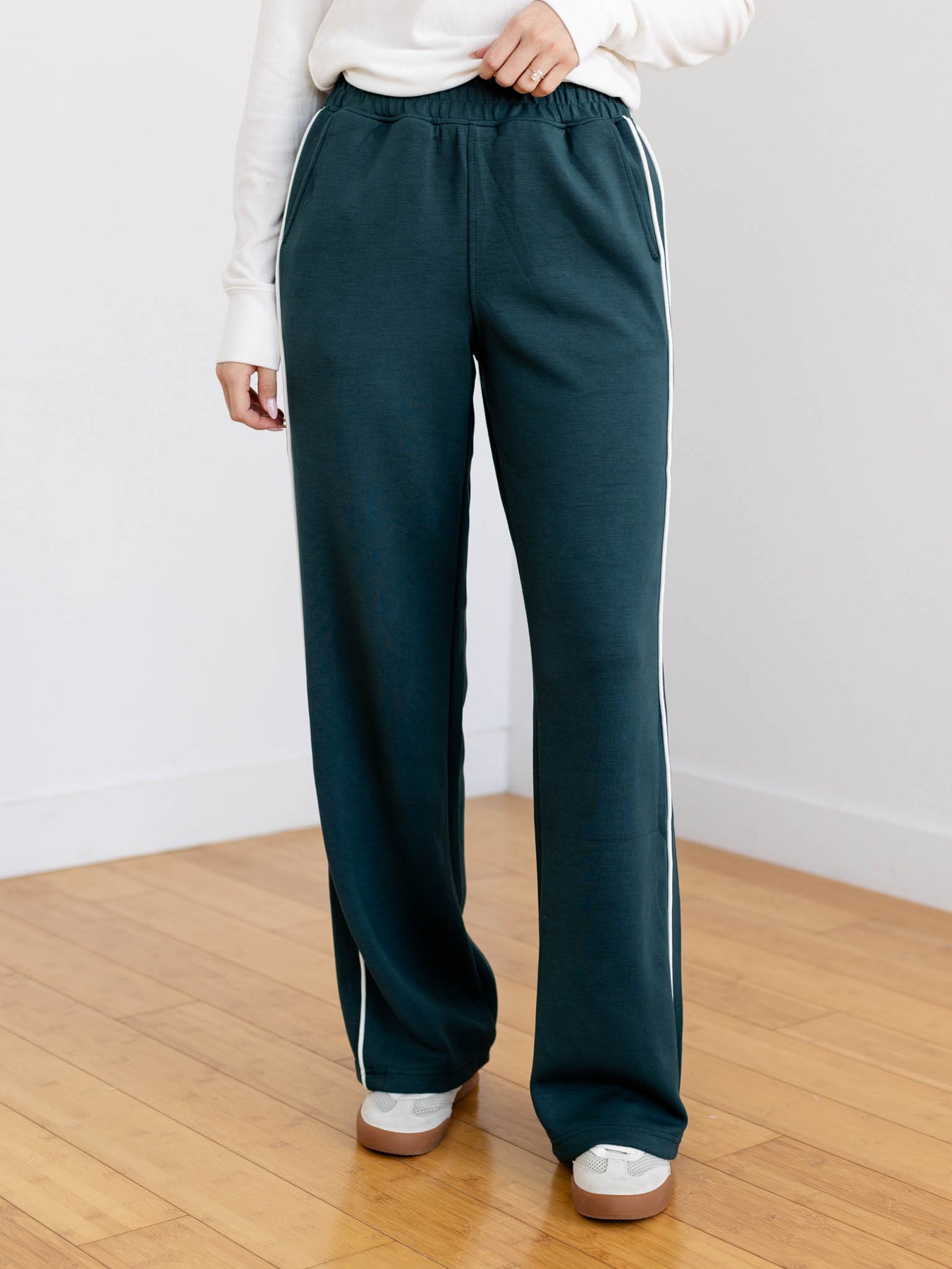The DoubleLUXE Piping Straight Leg pants feature a sleek straight leg silhouette with trending piping trim detail for a modern edge. Designed with an elastic pull-on waistband, they offer easy, comfortable wear throughout your day. Crafted from our best-selling DoubleLUXE fabric, these pants provide a soft, durable feel perfect for mixing and matching with your favorite athleisure pieces. Embrace style and comfort confidently with these versatile essentials.