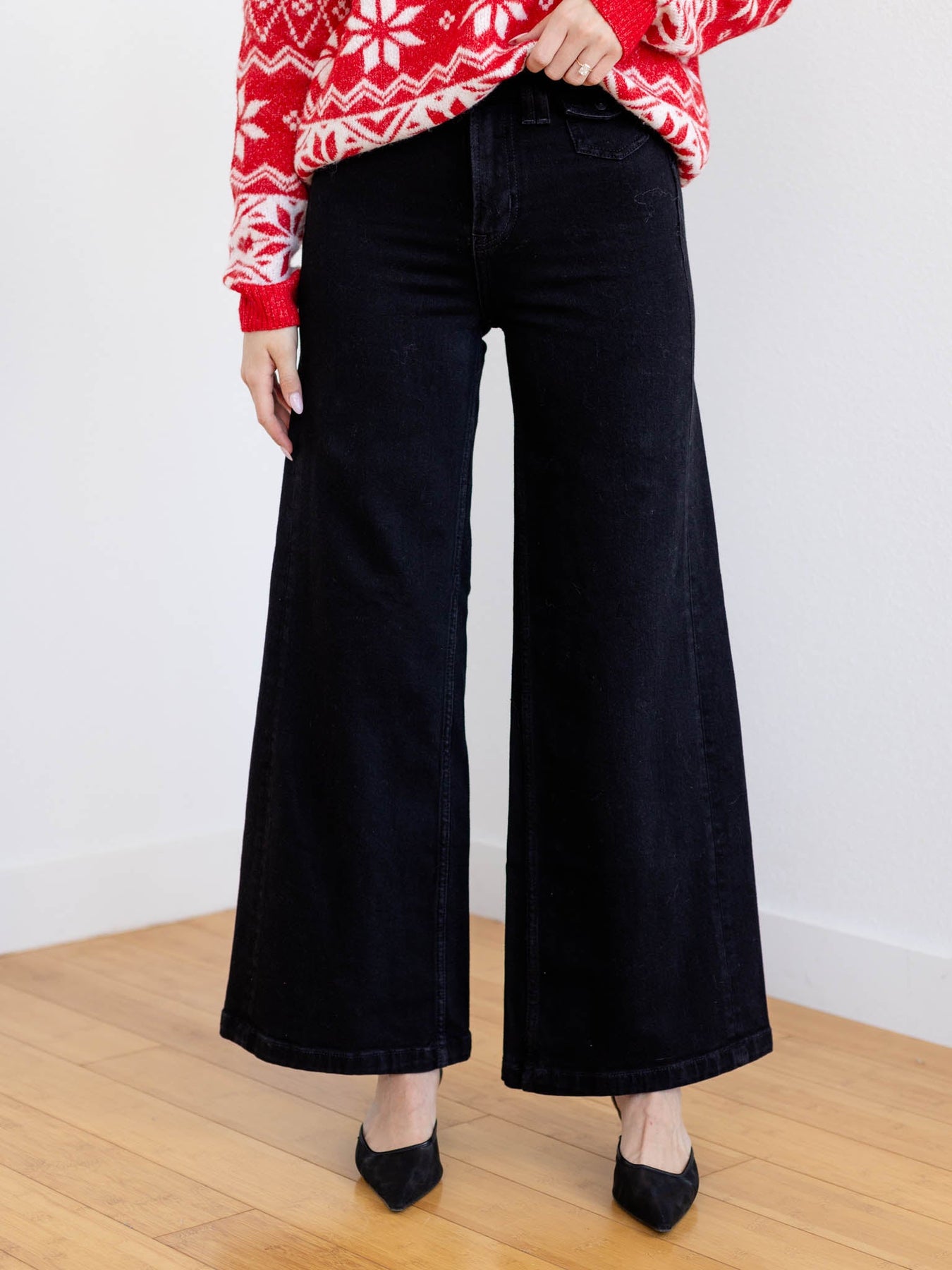 Denim has been styled with The Christmas Sweater