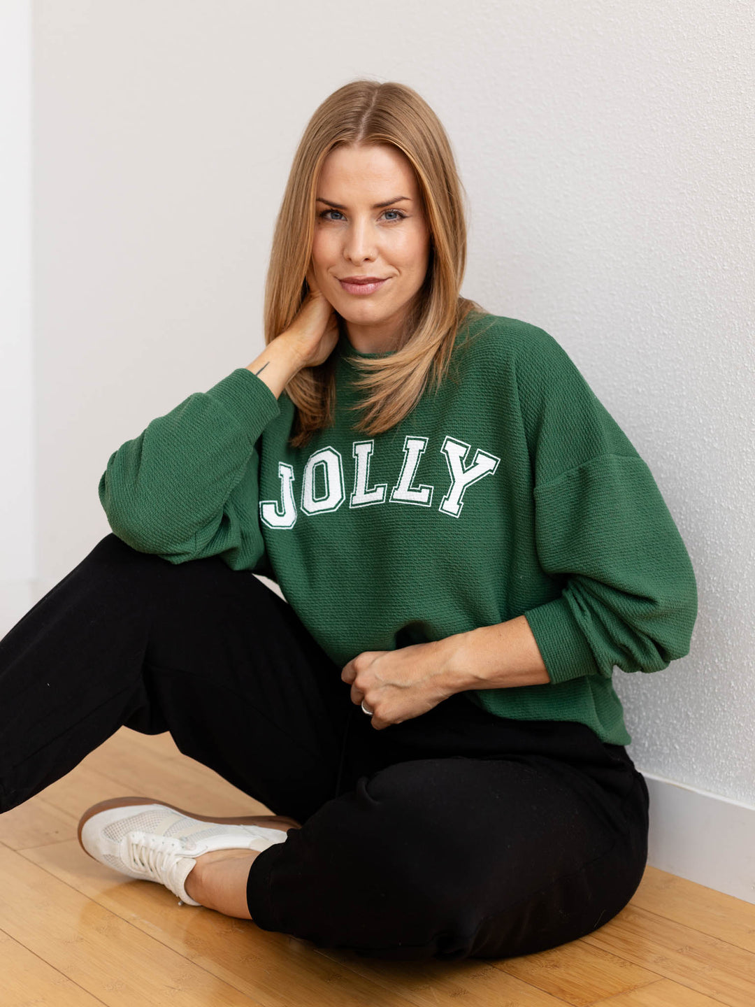 Spread holiday cheer in this playful knit featuring a bold jolly graphic front and center. The higher crew neck and relaxed, oversized silhouette create the perfect cozy vibe, while the textured knit design adds visual interest and dimension. Ideal for casual gatherings, festive outings, or simply embracing the season's fun spirit. A must-have piece that balances comfort with celebratory style.