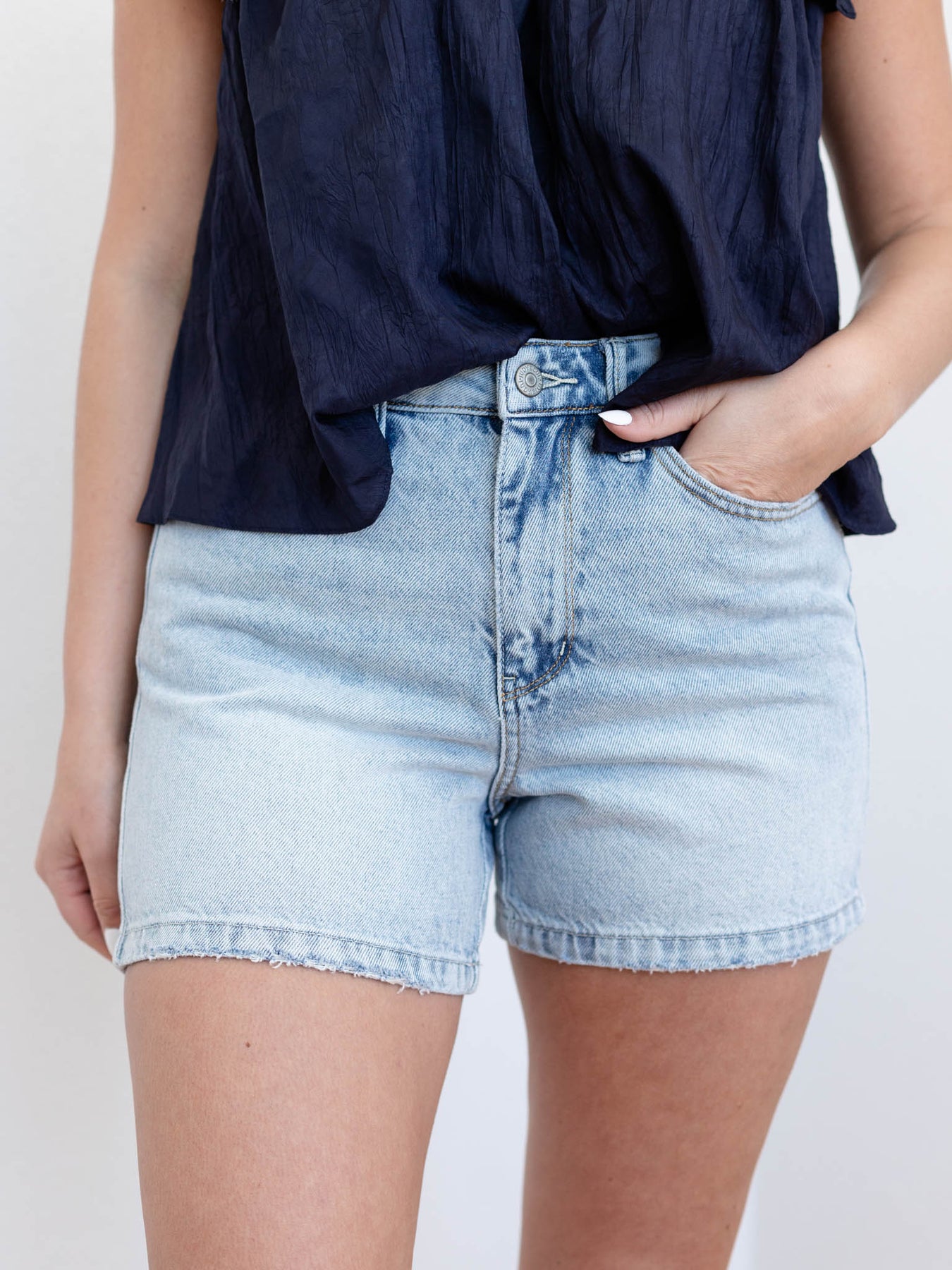 We are loving the light wash coloration of these denim shorts from Judy Blue to give the perfect touch of spring and summer appeal. Cut from a high rise design, these slightly longer shorts provide modest coverage and a rigid, flattering fit. An easy go-to for season long wear this year!