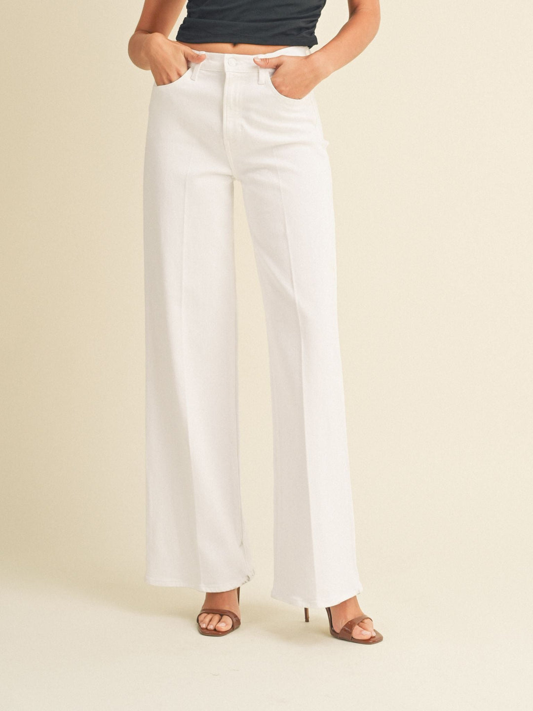 Introducing our Just Black White Palazzo Jean! With its crisp white coloration and wide leg silhouette, this jean offers a polished look that can be dressed up or down. Make a statement in this versatile piece and elevate your wardrobe today!