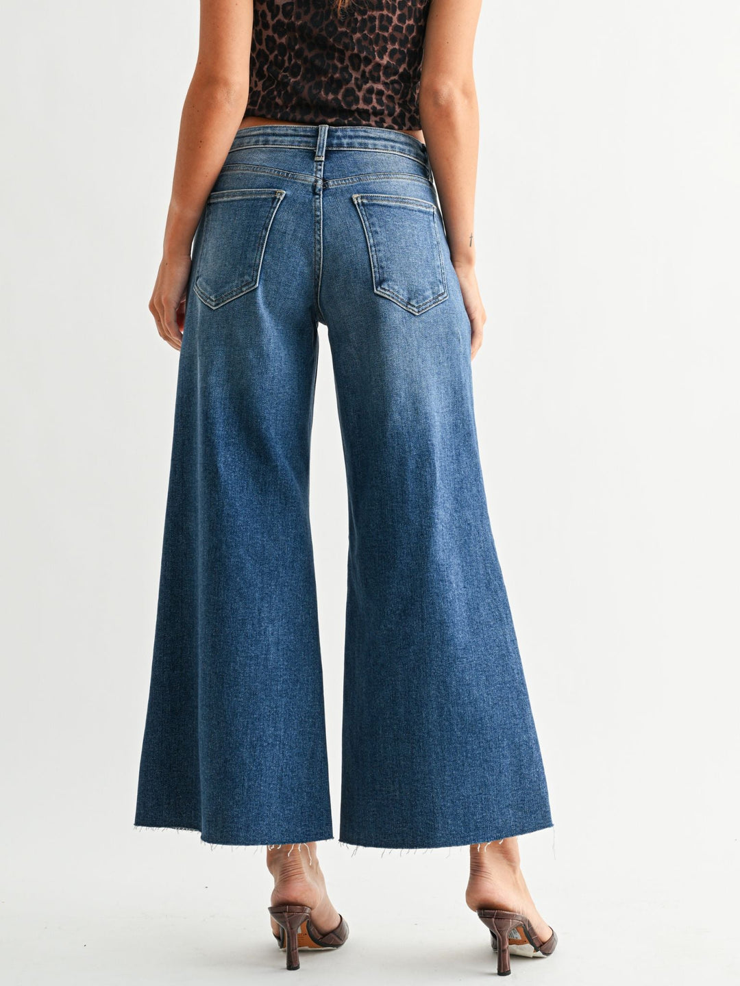 Add some flare to your wardrobe with our Just Black Wide Leg Flare Crop. This medium wash denim offers a comfy stretch and a playful crop fit. Stand out in style with the wide leg and slight flare design. Who says comfort and fashion can't go hand in hand?