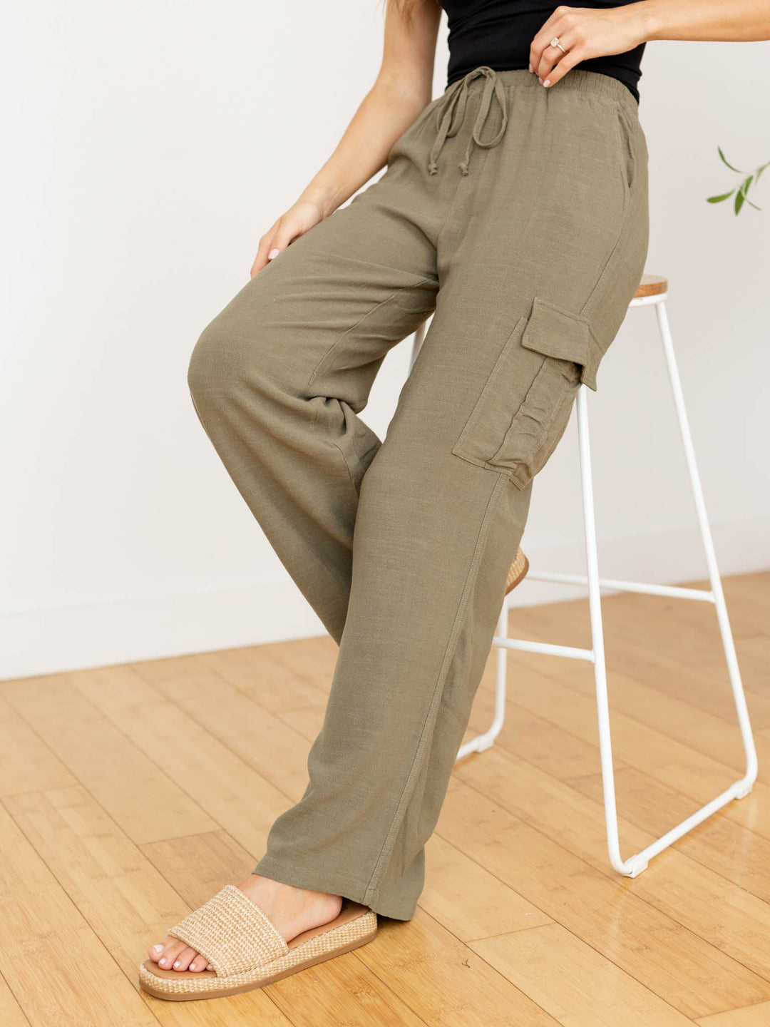 Step into comfort and style with these playful wide-leg linen cargo pants. Crafted from breezy linen, they keep you cool while the cargo-inspired pockets add a fun, functional twist. The drawstring waistband ensures a perfect fit, making them easy to dress up or down for any occasion. Effortless style has never felt this good!