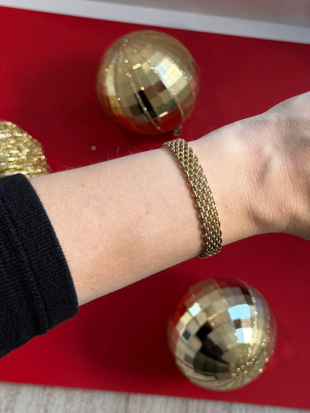 Inspired from a close knit watch link, this thicker bracelet adds a bold touch to any look.