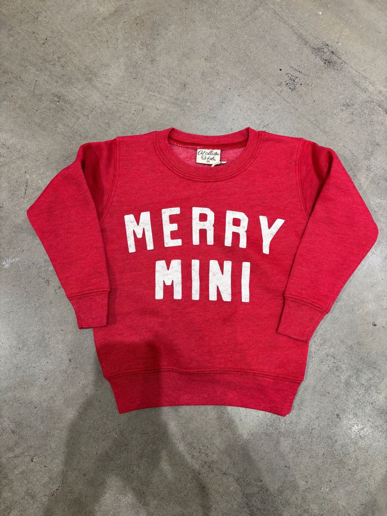 Celebrate the season in style with this Merry Mini Graphic Sweatshirt, featuring a festive design that spreads holiday cheer. The classic crew neckline and ultra-soft fabric make it perfect for cozy days, while the playful graphic pairs beautifully with our coordinating adult sweatshirt for matching family moments. Comfort meets fun in this must-have seasonal piece.