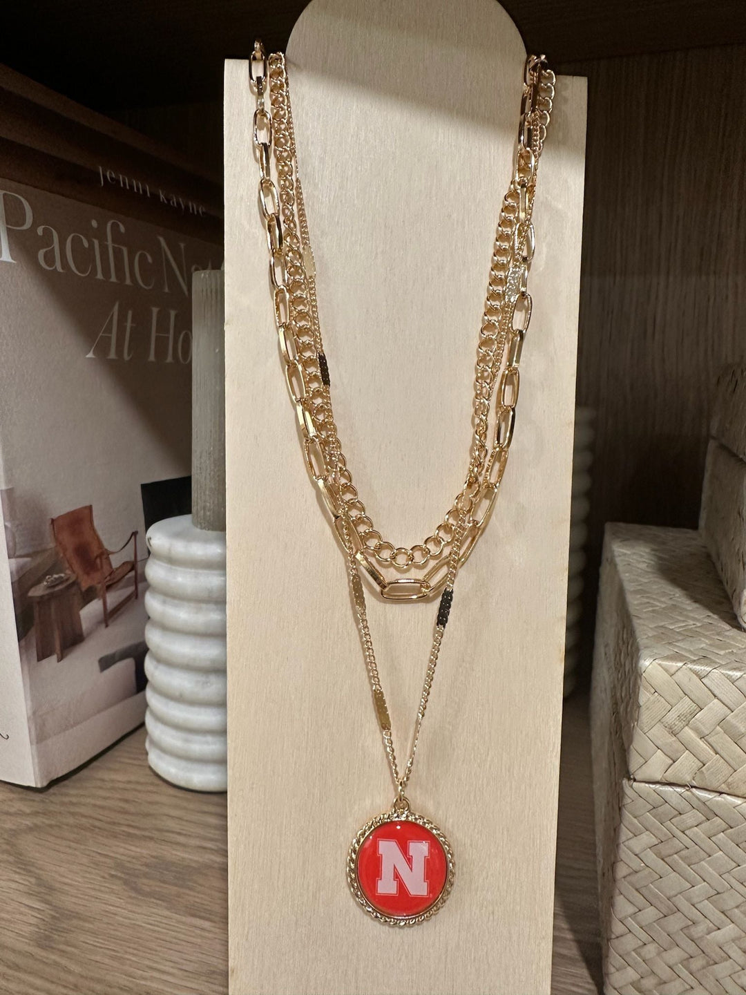 Elevate your game day look with this new arrival. Layered looks of multiple chains and a Nebraska charm add a fun and playful addition to any game day look.