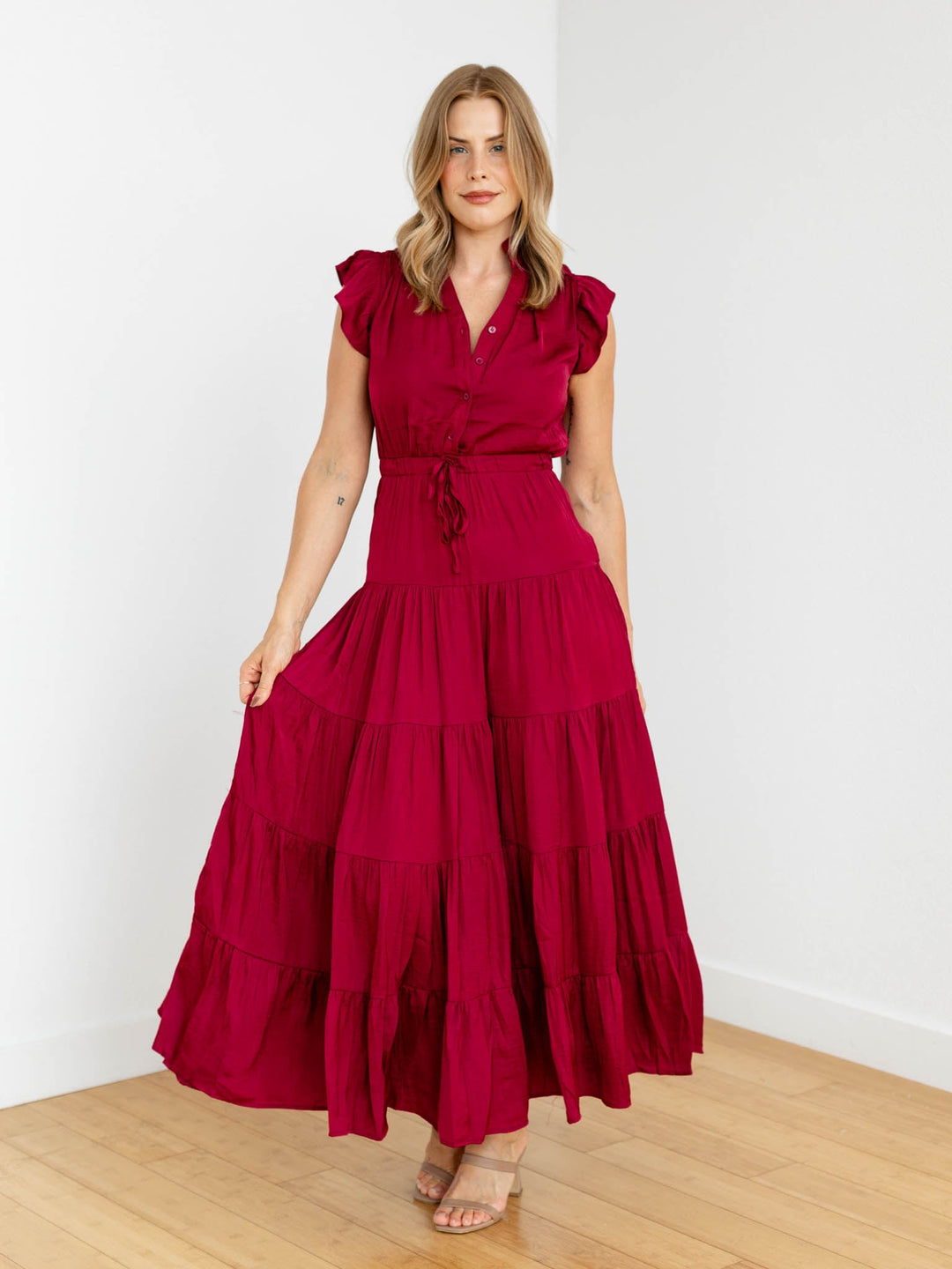 deep red tiered maxi dress