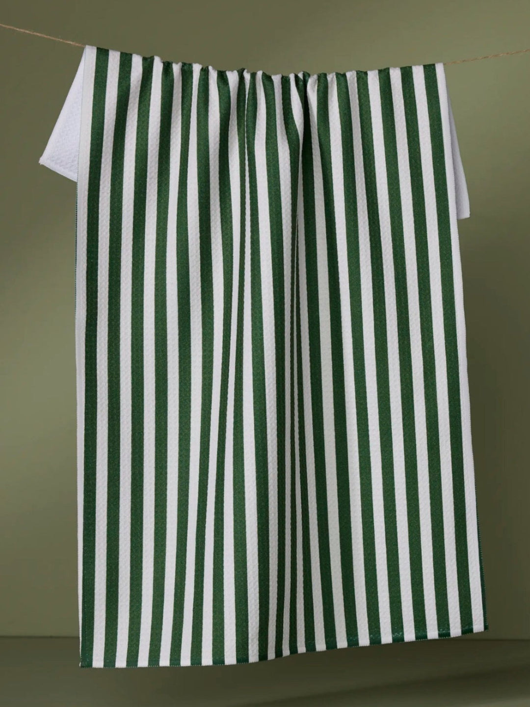 We love this bold green and white striped tea towel to add a pop of color and print into any bar or kitchen area.