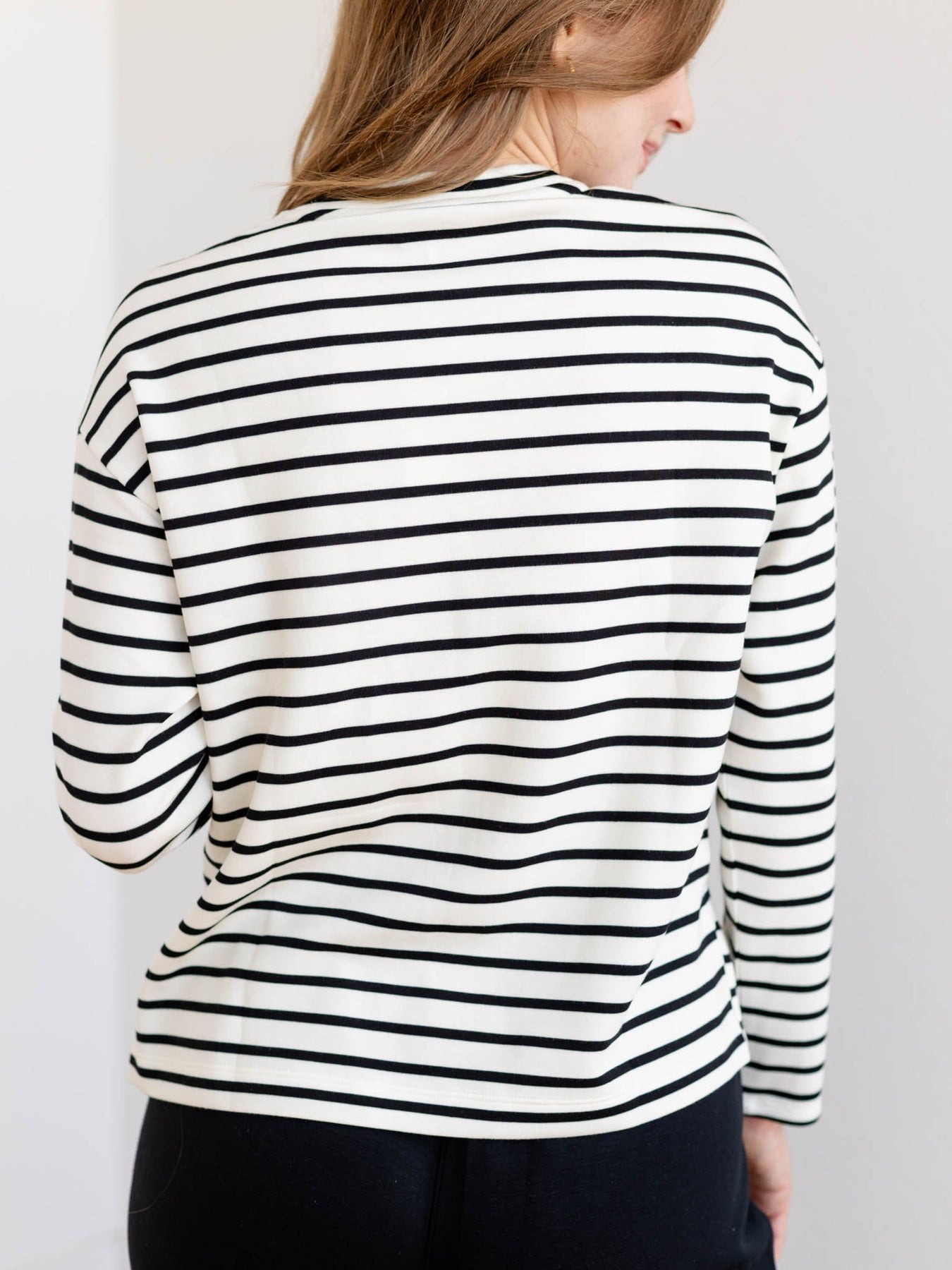Stripes never go out of style—especially when they're this soft and effortless. This long sleeve top pairs a timeless stripe pattern with buttery-smooth athleisure fabric that feels as good as it looks. The lightweight construction keeps you comfortable all day, while the rounded crew neckline adds just the right touch of casual polish. Perfect for those days when you want to look put-together without trying too hard. Throw it on with your favorite jeans or leggings and call it a win.