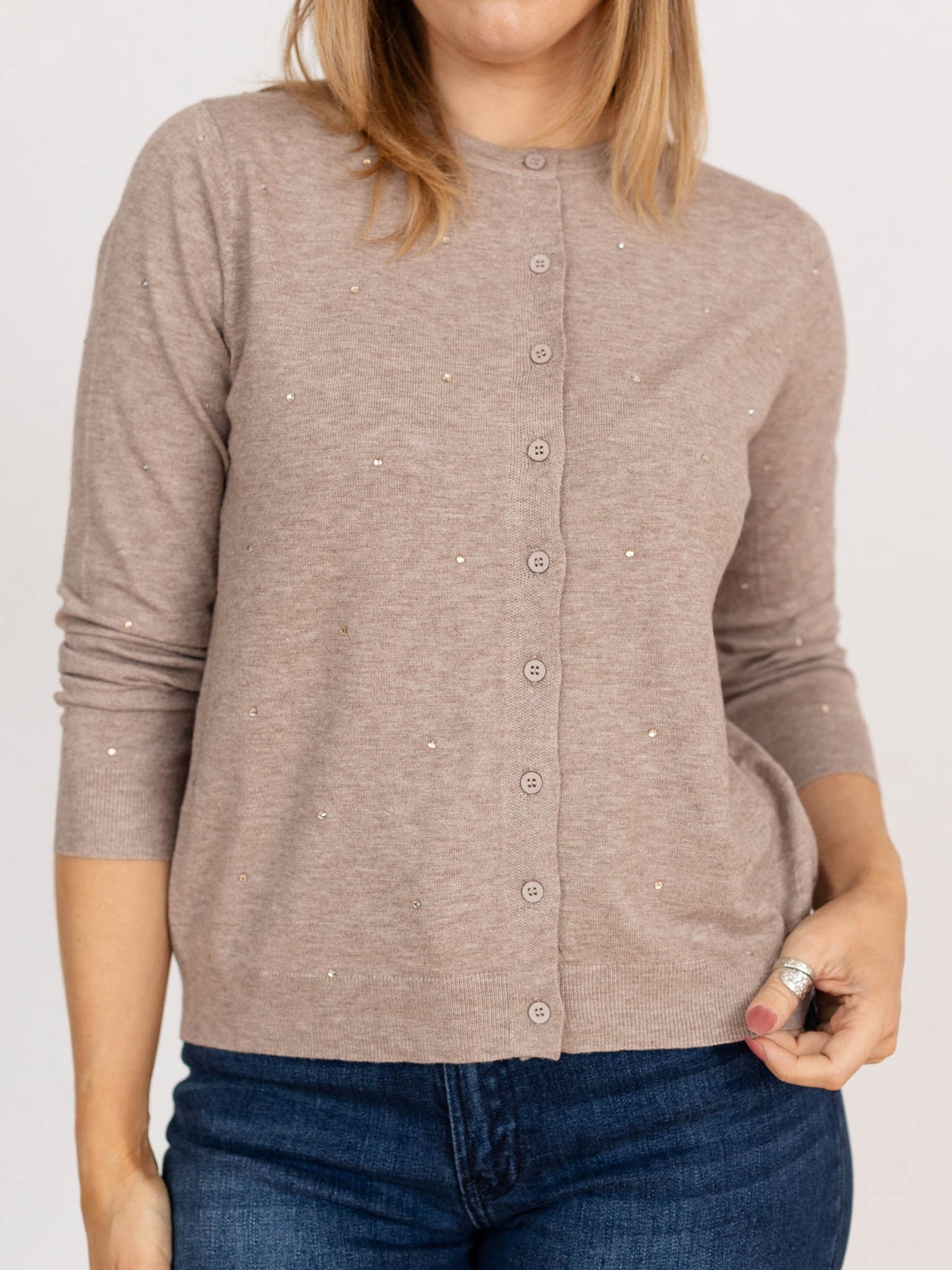 Elevate your everyday style with this chic sweater knit cardigan that's as fun as it is functional. Featuring a button-front design and sparkling rhinestone crystal accents, it's the perfect piece to add a little glamour to your wardrobe. The lightweight construction keeps you comfortable all day long, while the slightly fitted silhouette flatters your figure beautifully. Layer it over your favorite tee or dress it up for a night out—this versatile cardigan is ready for anything.