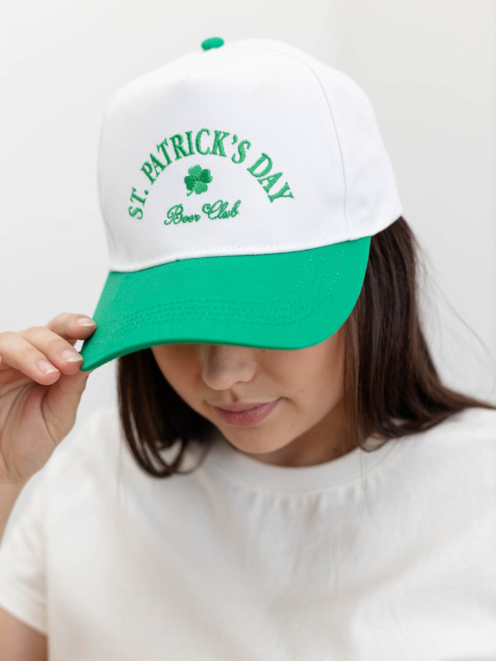 Perfect for St. Patricks Day - this new trucker hat features an embroidered festive accent along a two tone hat.