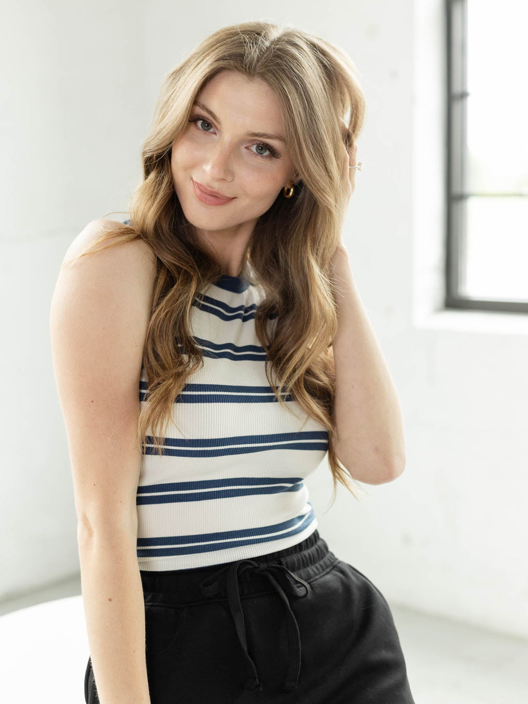 This new tank from Thread + Supply brings a playful twist to your wardrobe with its varsity-inspired design and bold stripe pattern. Featuring a higher neckline and a sleeveless, fitted ribbed knit silhouette, this tank offers a flattering, laid-back look perfect for casual days. Its sporty vibe pairs effortlessly with jeans or shorts for an easygoing style that stands out.