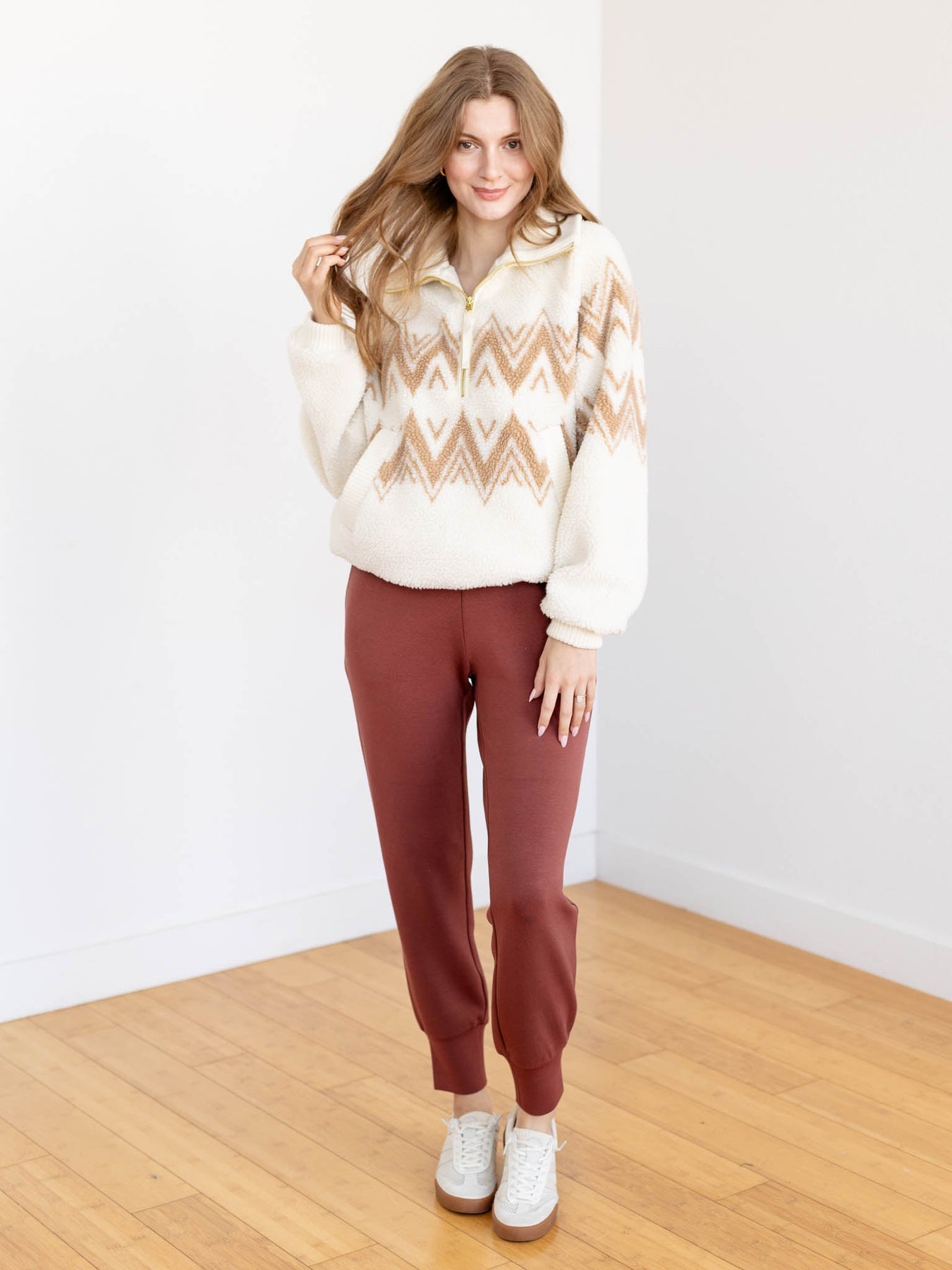 Wrap yourself in cozy vibes with the Varley Hendrik Half Zip Sherpa—your new winter essential! This playful pullover features a plush sherpa fabrication that's perfect for chilly days, complete with a stylish half-zip design for easy layering. The ribbed trim accents frame the collared neckline beautifully, while a drawstring hem detail lets you customize the fit. Top it off with the winter-inspired chevron pattern that adds visual interest and personality to every outfit. Snug, chic, and ready for adventure.