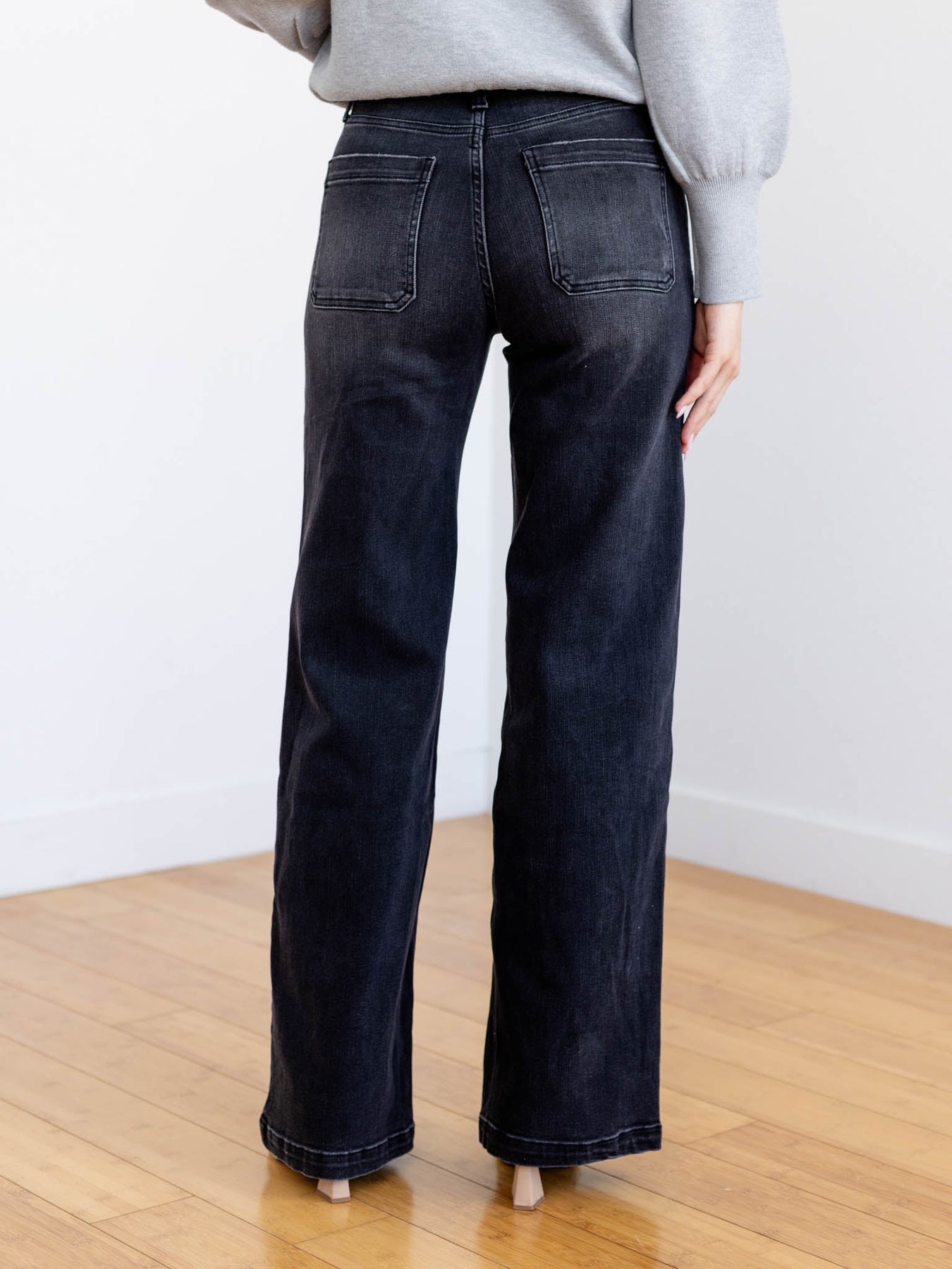 Meet your new favorite go-everywhere jean: the Vervet Engross High Rise Wide Trouser. Crafted in soft washed black denim with just the right amount of stretch, these trousers hug your curves in all the right ways while keeping you comfy all day long. The high rise silhouette flatters your figure, while the wide leg creates an effortlessly cool vibe. Plus, those eye-catching front pocket details add just the right touch of personality. Dress them up or down—either way, you'll feel like the star of the show.