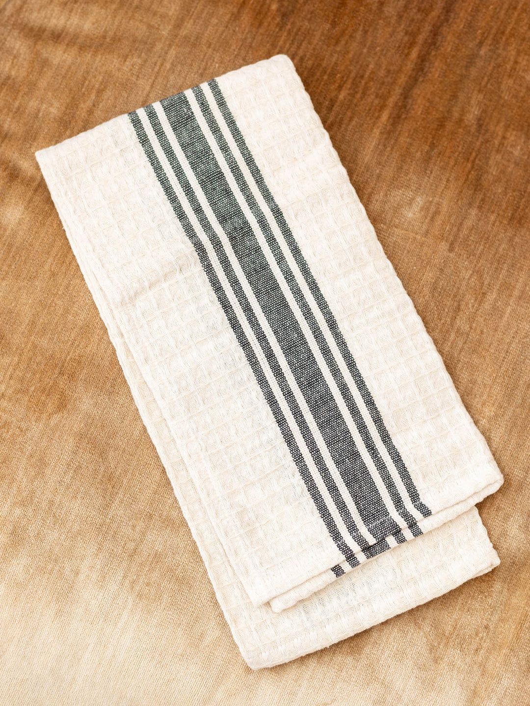 A functional waffle textured fabrication is mixed with a washed stripe design to add the perfect pop of aesthetic flair to any bar or kitchen area.
