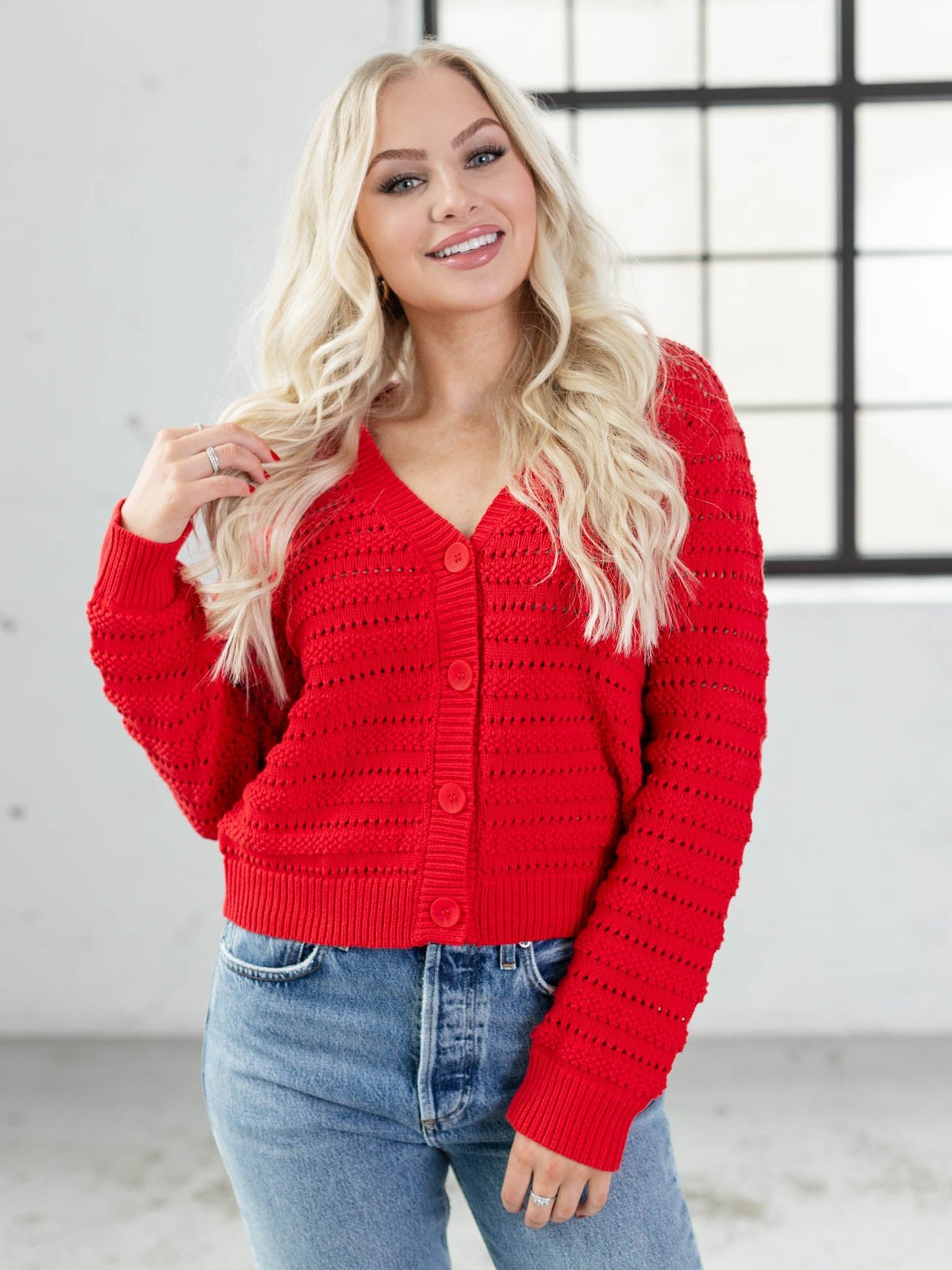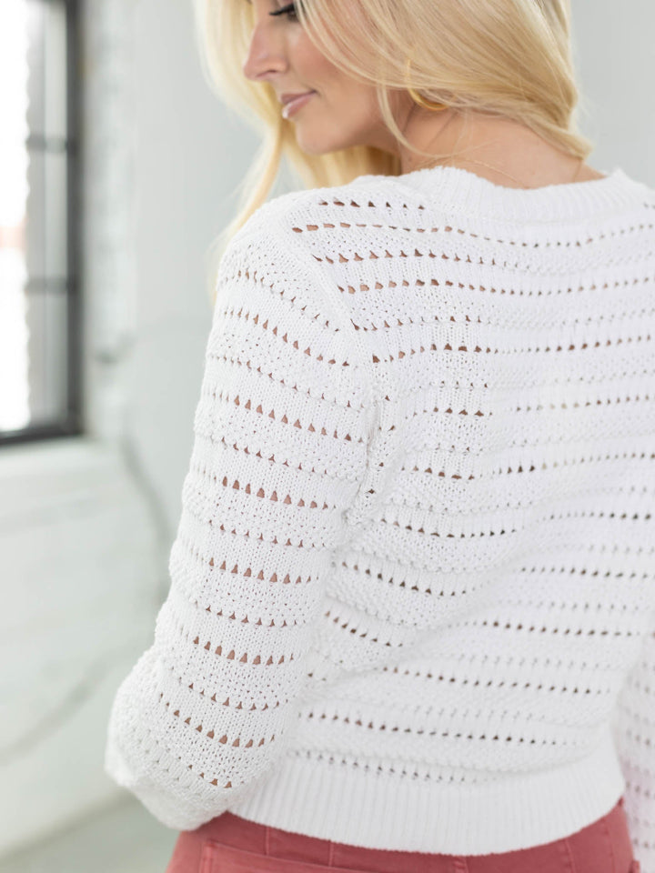 The perfect layer to take into the transitional spring season, this new arrival from Z Supply features an open knit design throughout a shorter, cropped cardigan silhouette. A classic button front design falls from a flattering v-neckline to create an ultra feminine feel throughout this look.